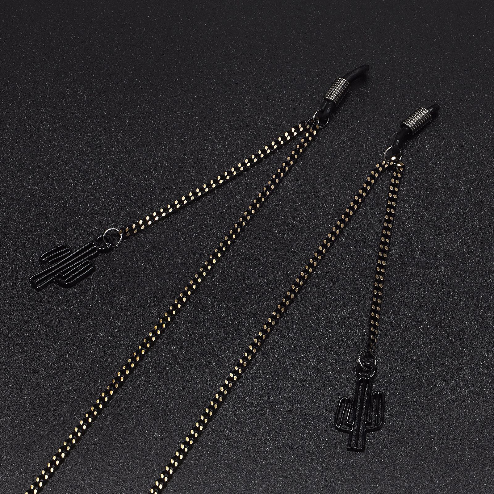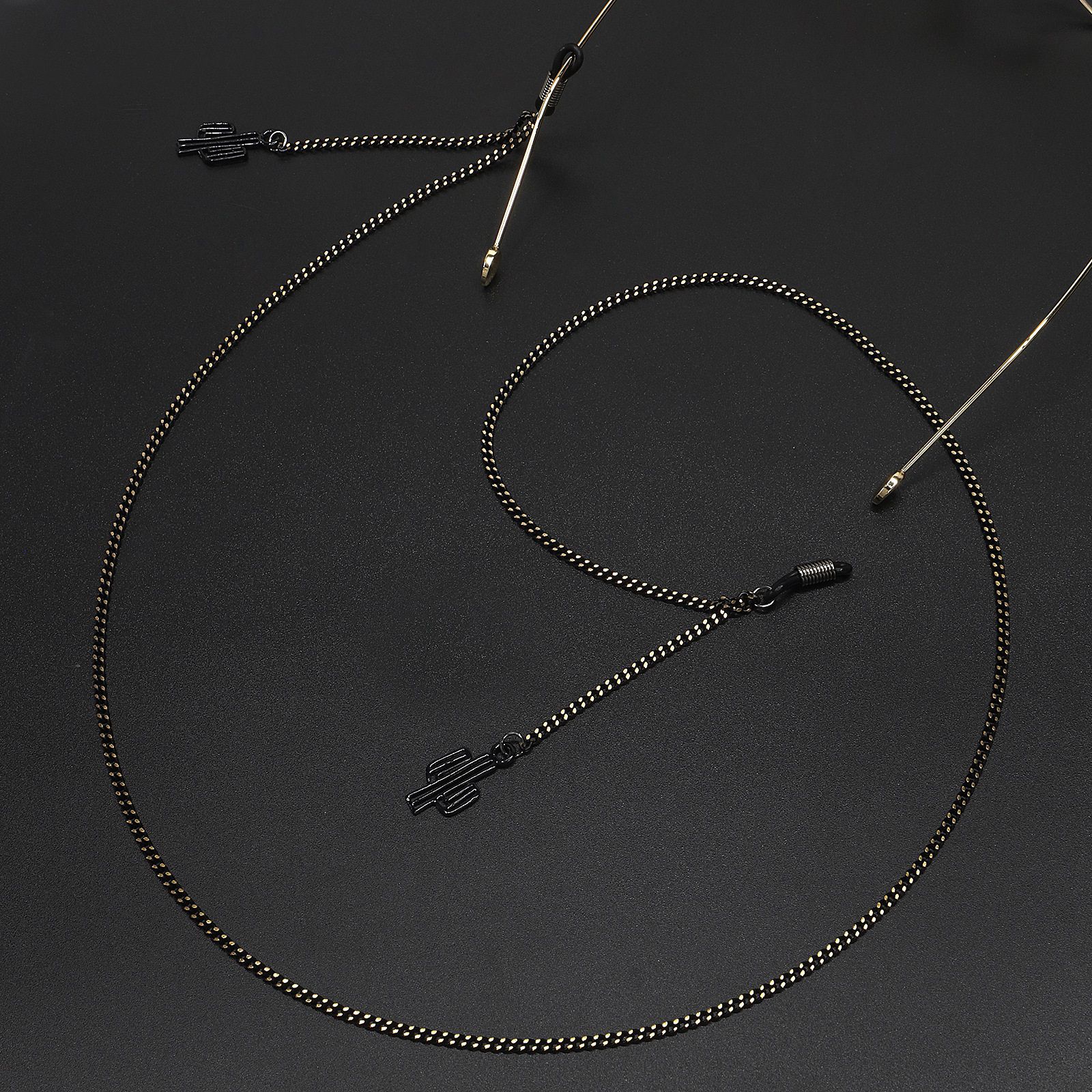 Black-colored metal non-slip chain, with pendant black cactus, for glasses and masks GL544