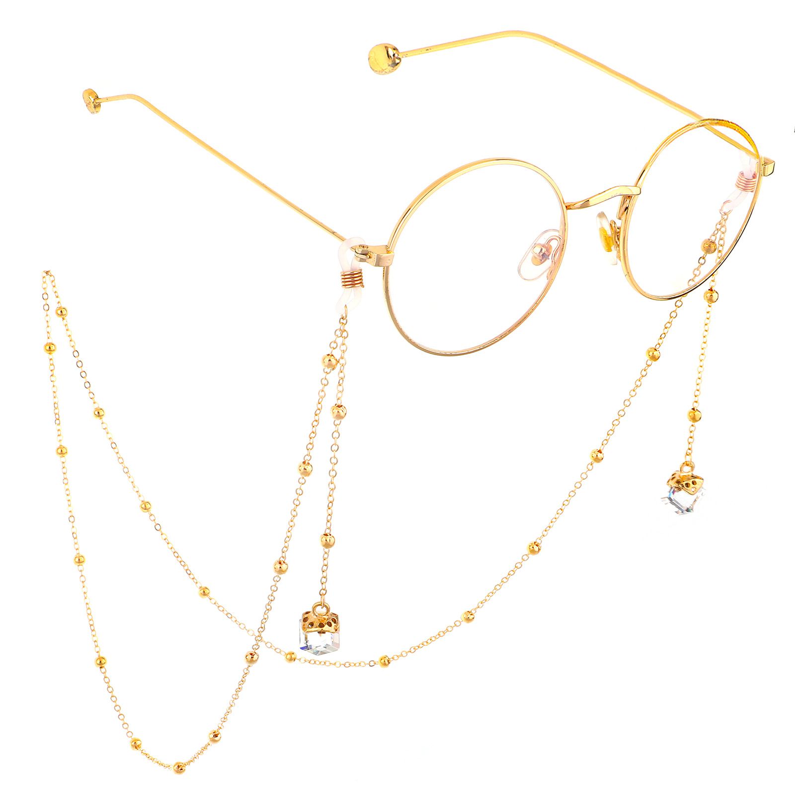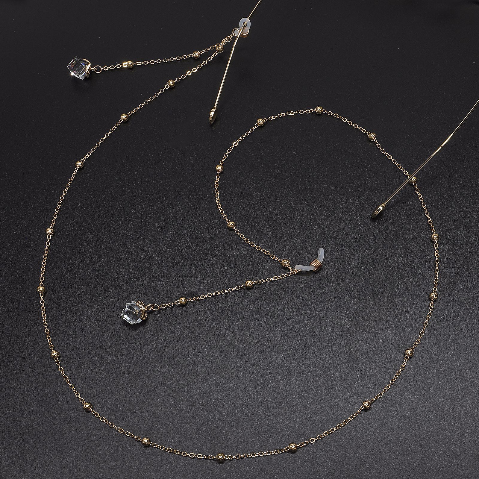 Gold-colored metal non-slip chain, with pendant crystal and beads, for glasses and masks GL550