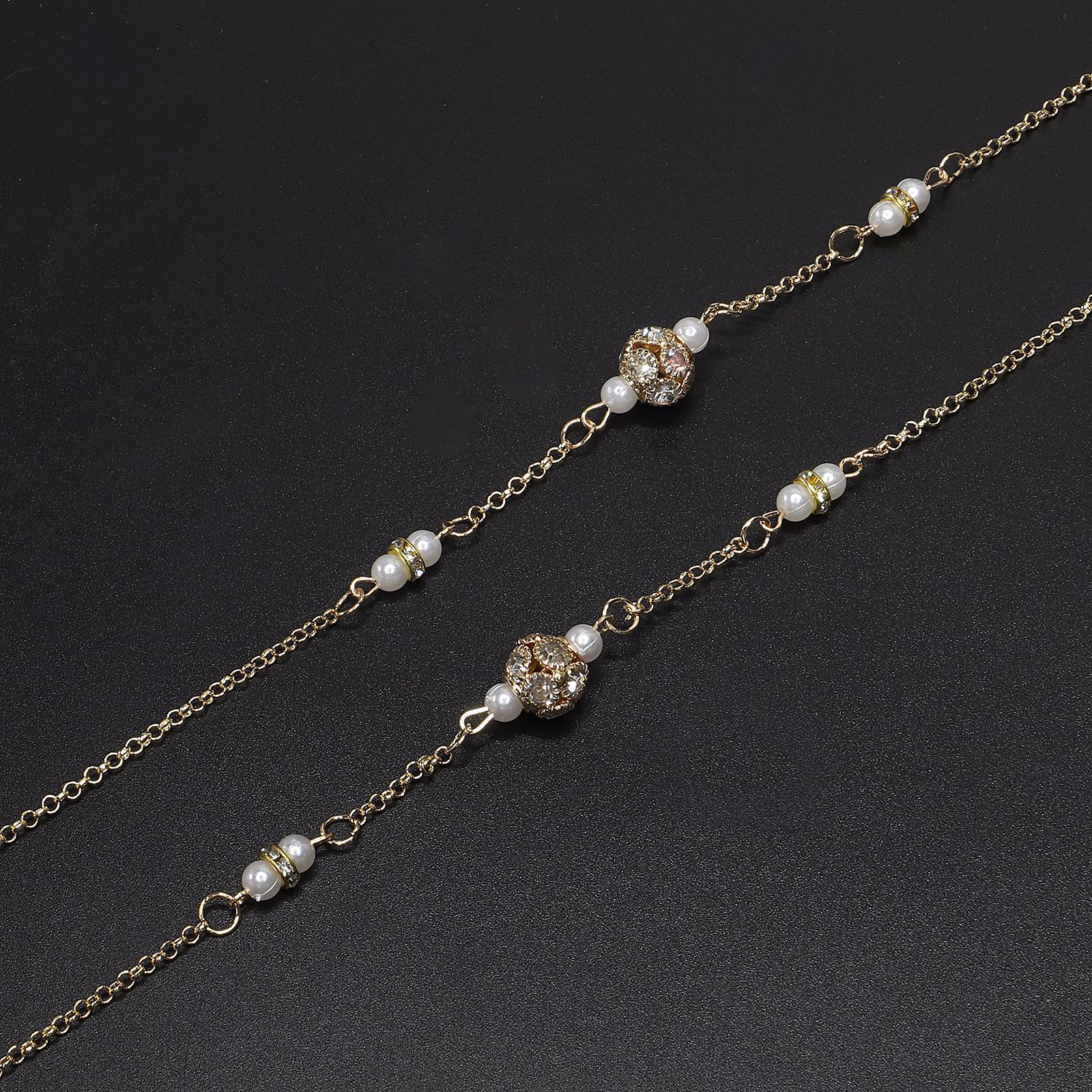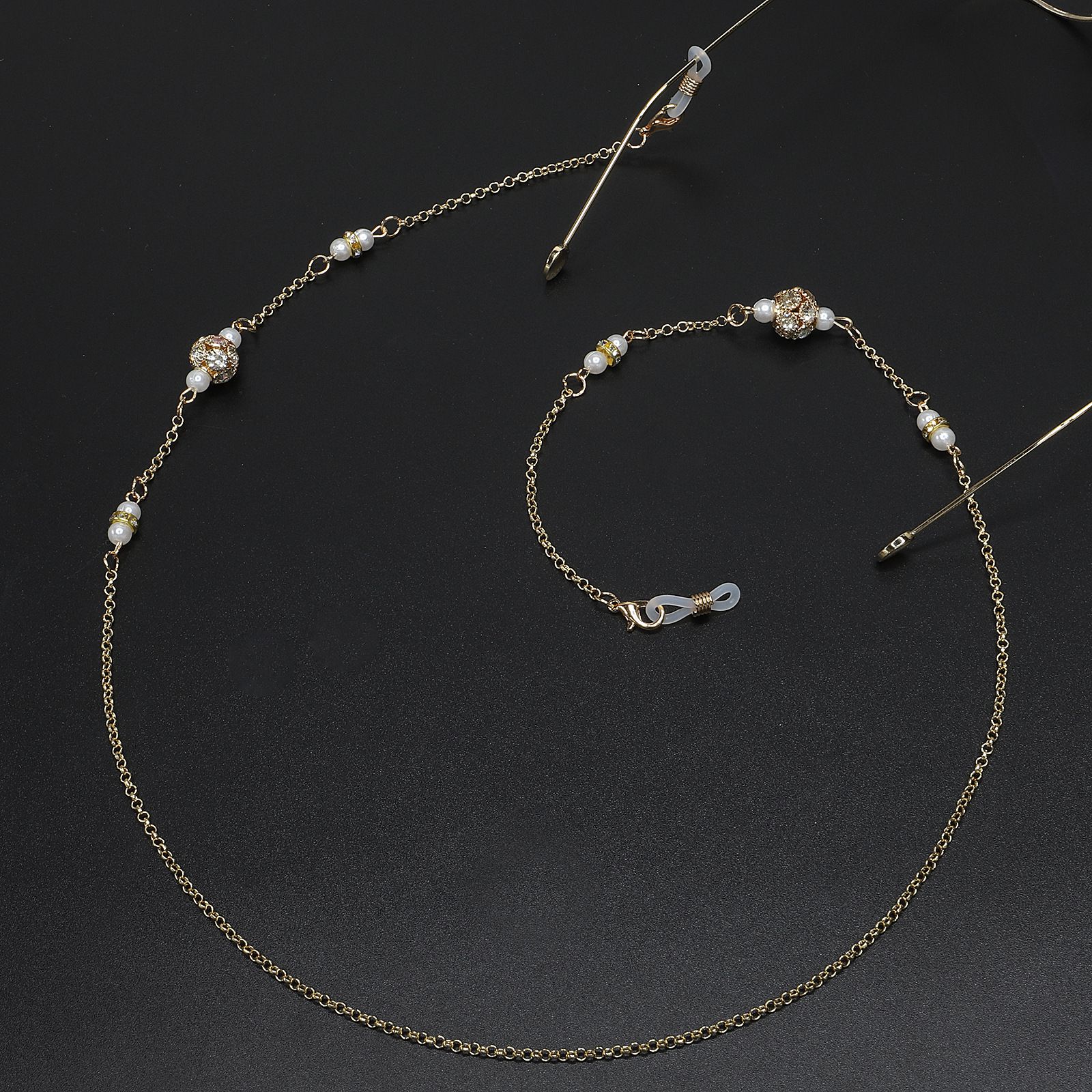 Gold-colored metal non-slip chain, with rhinestones and pearls, for glasses and masks GL553
