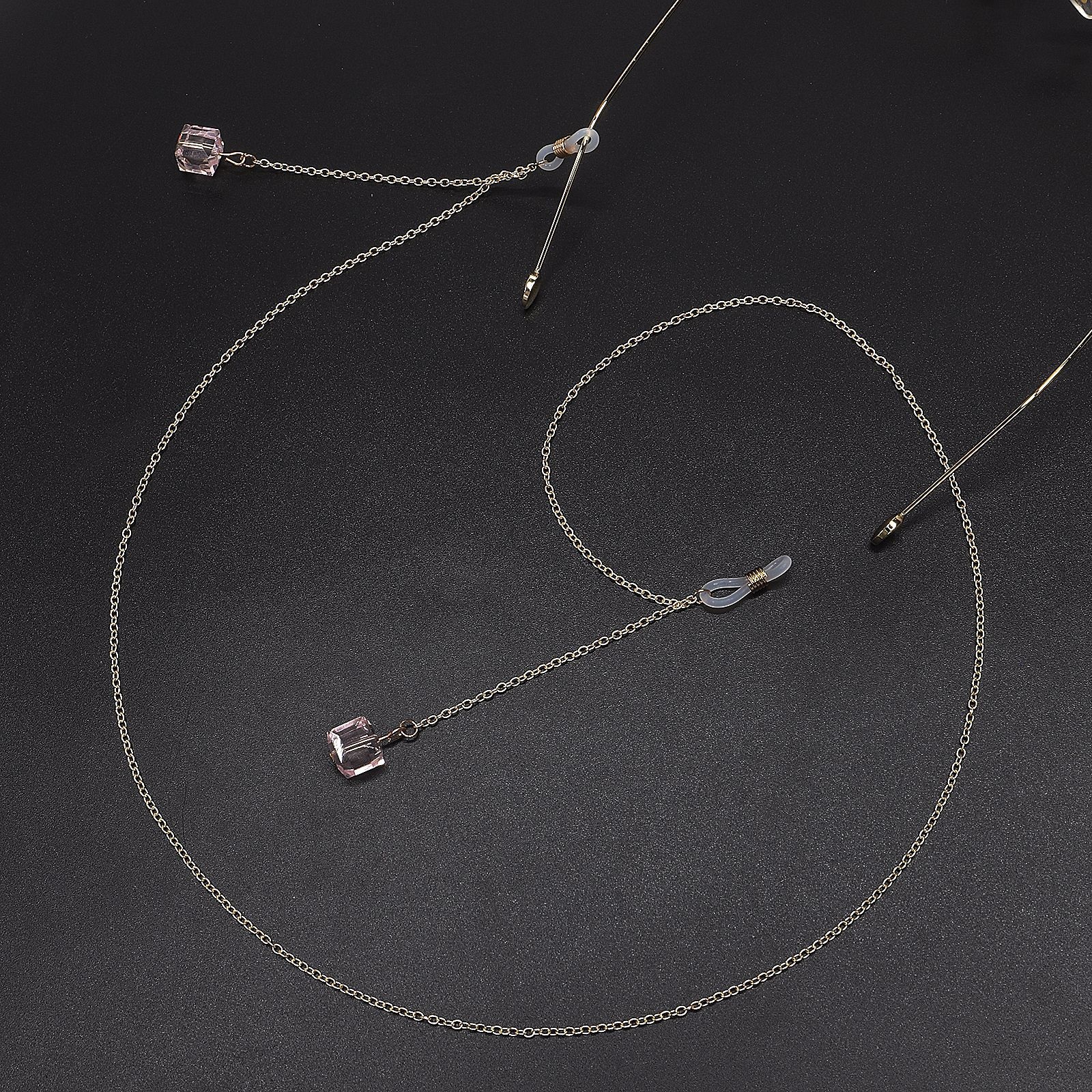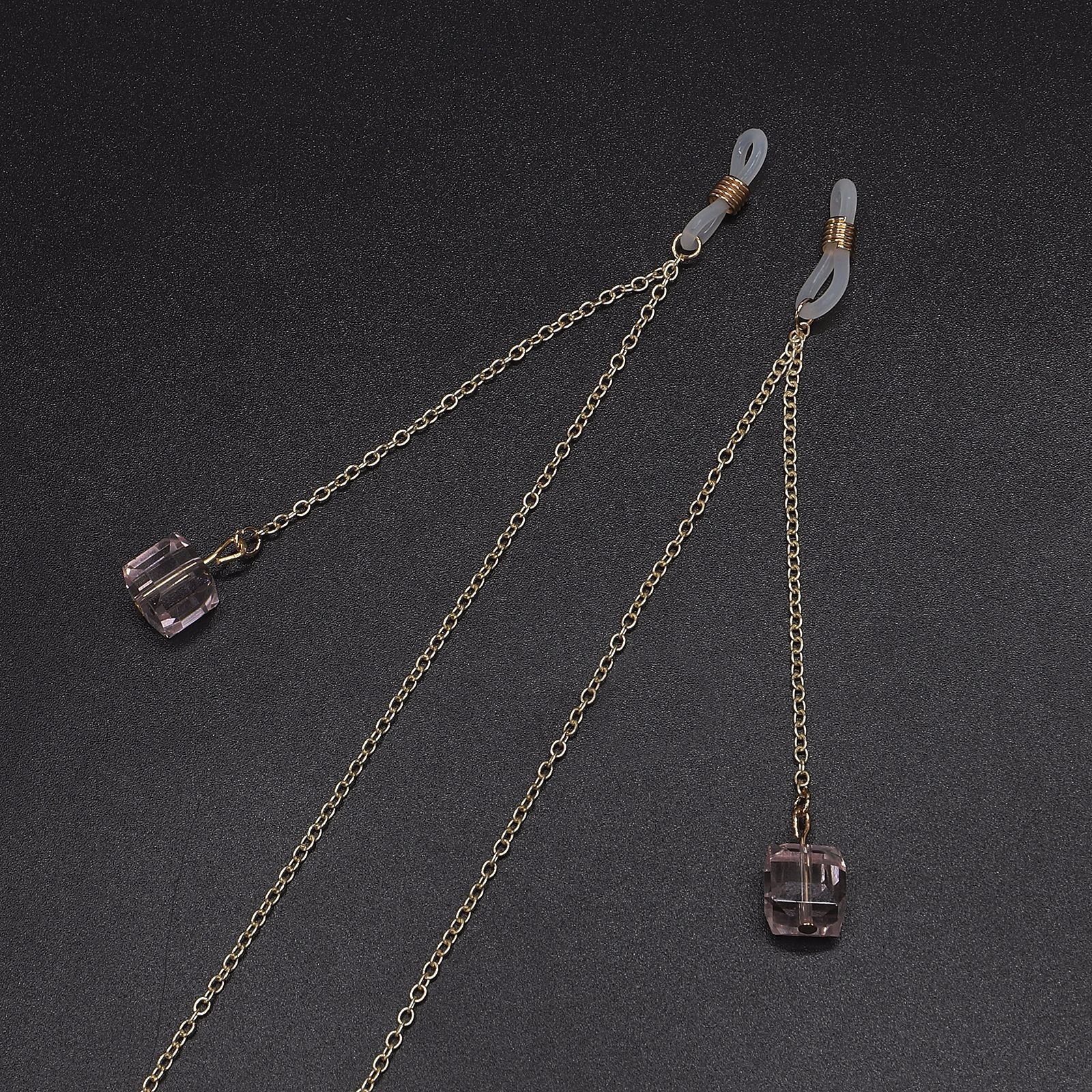 Gold-colored metal non-slip chain, with pendant pink crystal, for glasses and masks GL563