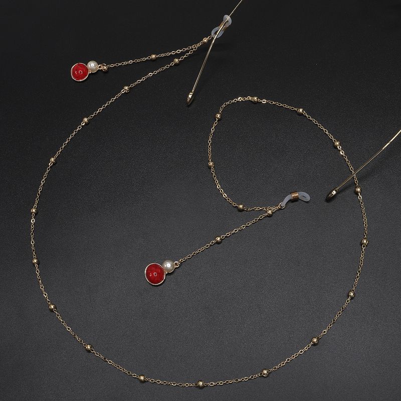 Gold-colored metal non-slip chain, with pearls, for glasses and masks GL572