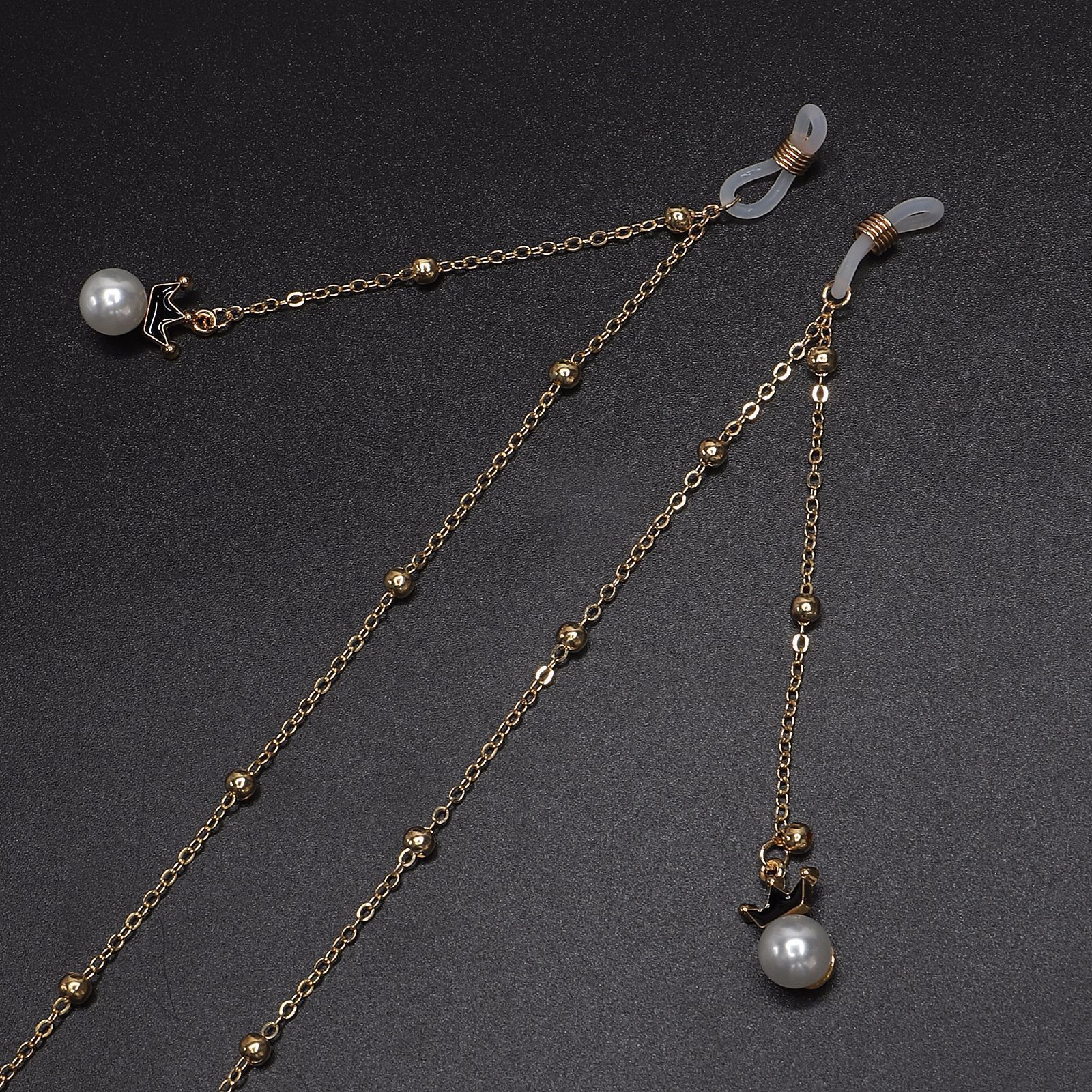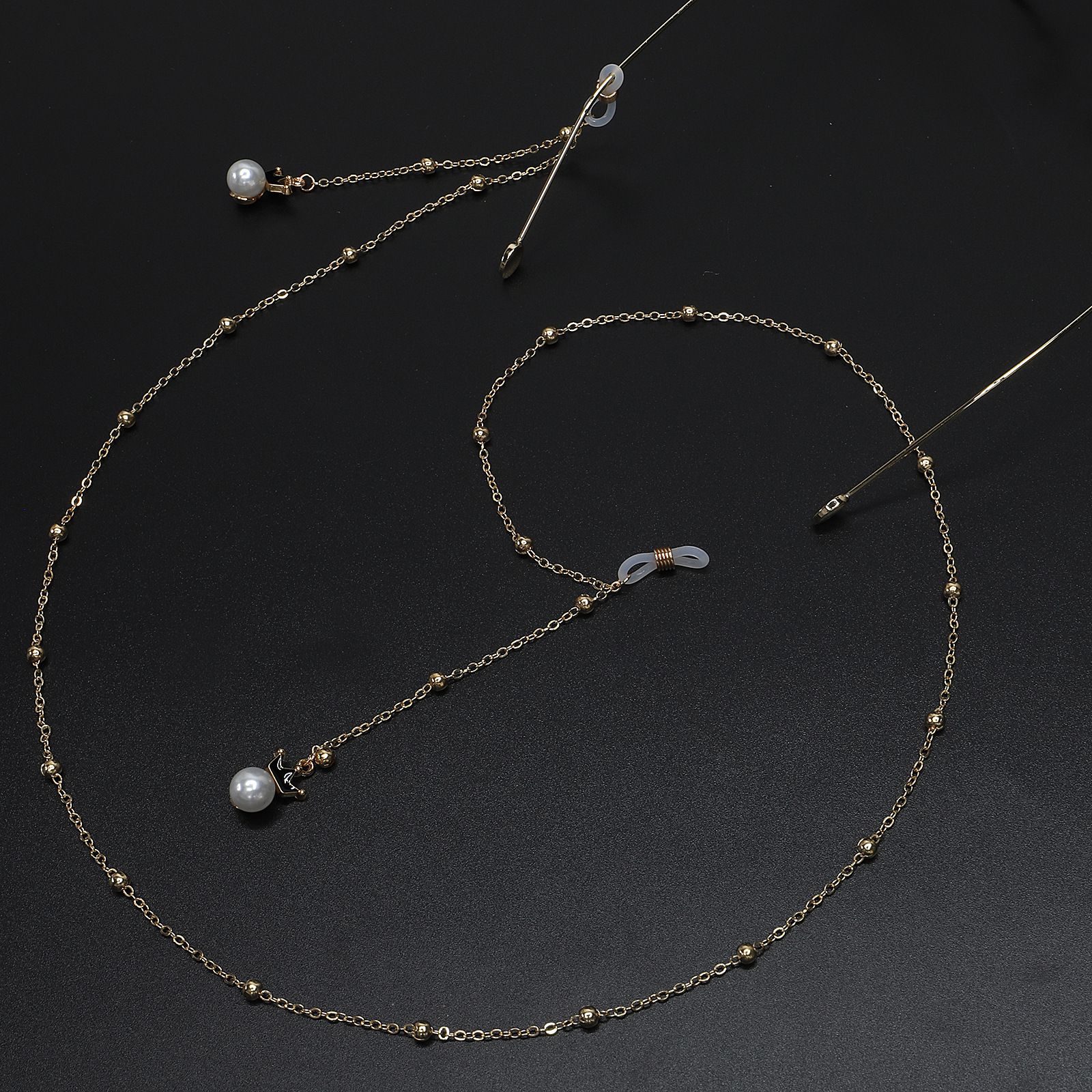 Gold-colored metal non-slip chain, with pendant pearl and beads, for glasses and masks GL580