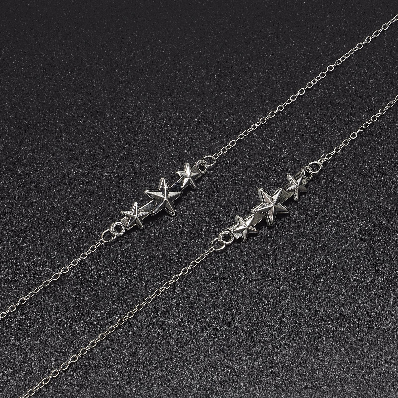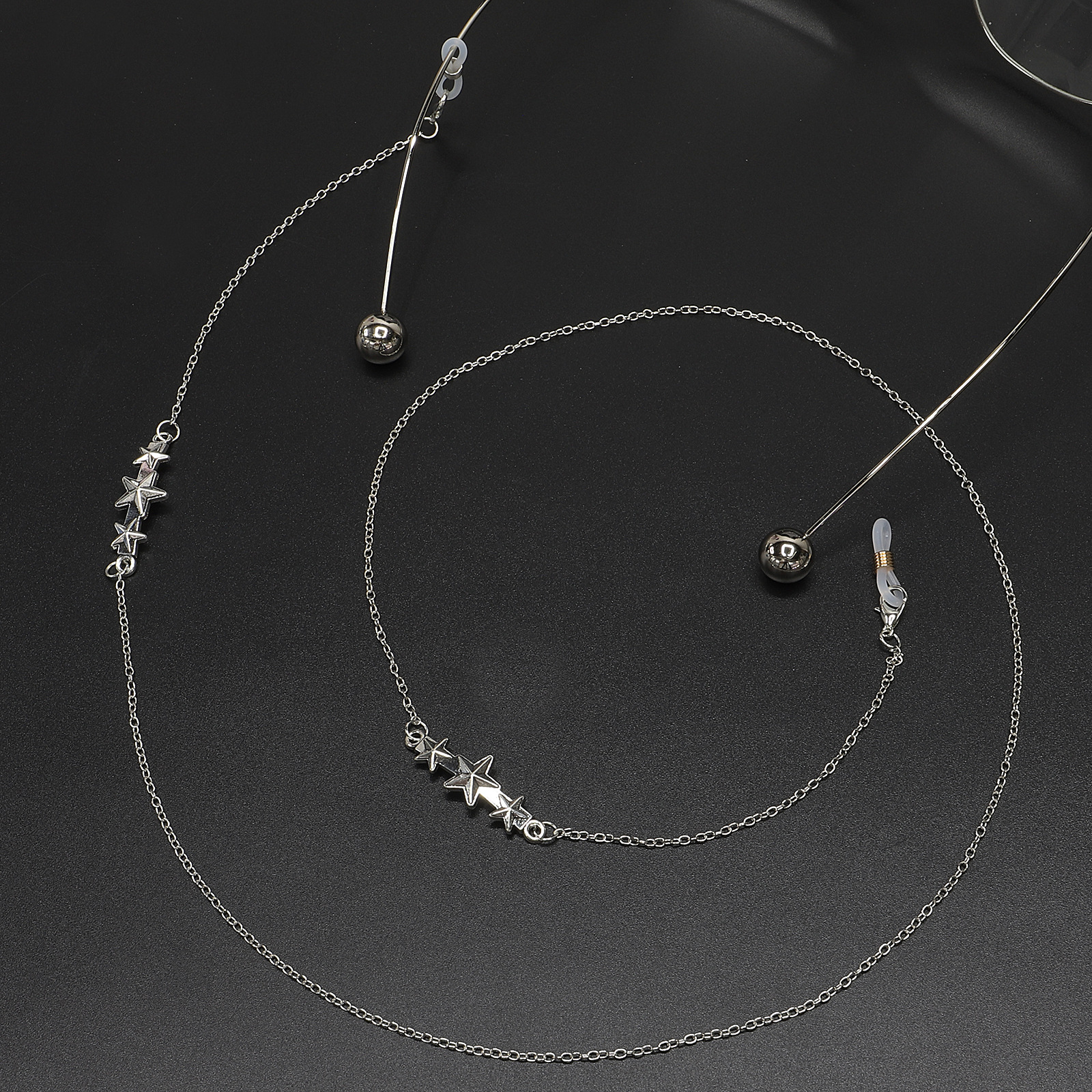 Silver-colored metal non-slip chain, with pendant 5 stars, for glasses and masks GL588