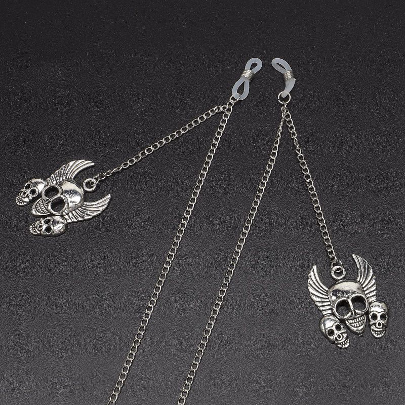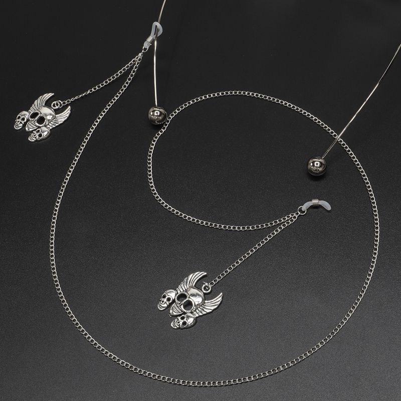 Silver-colored metal non-slip chain, with skull pendant, for glasses and masks GL590