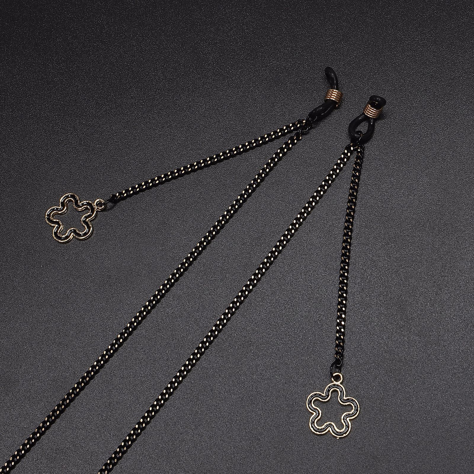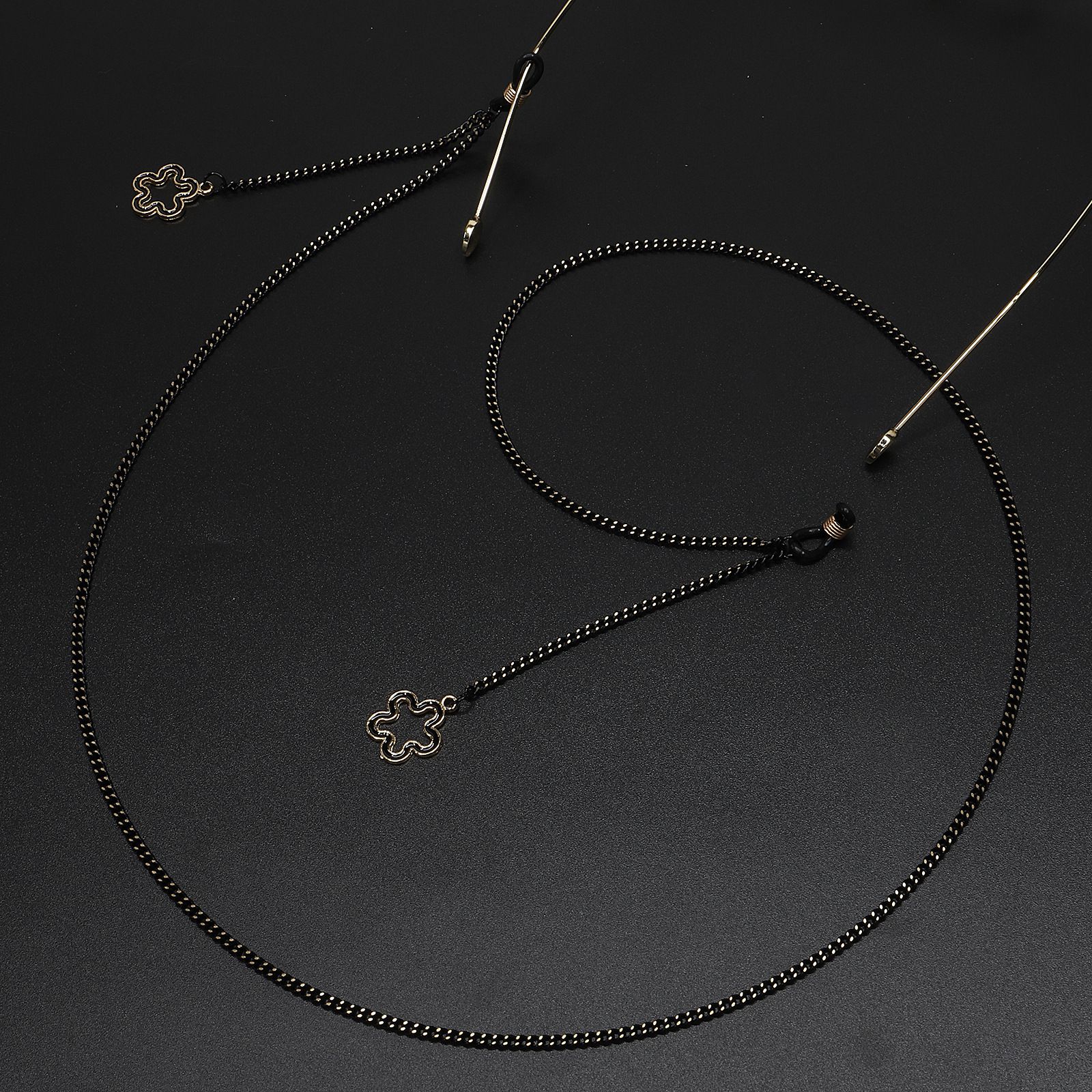 Black-colored metal non-slip chain, with pendant black flower, for glasses and masks GL591