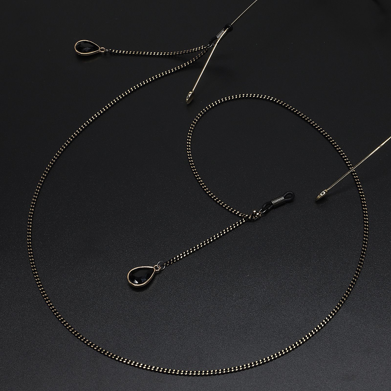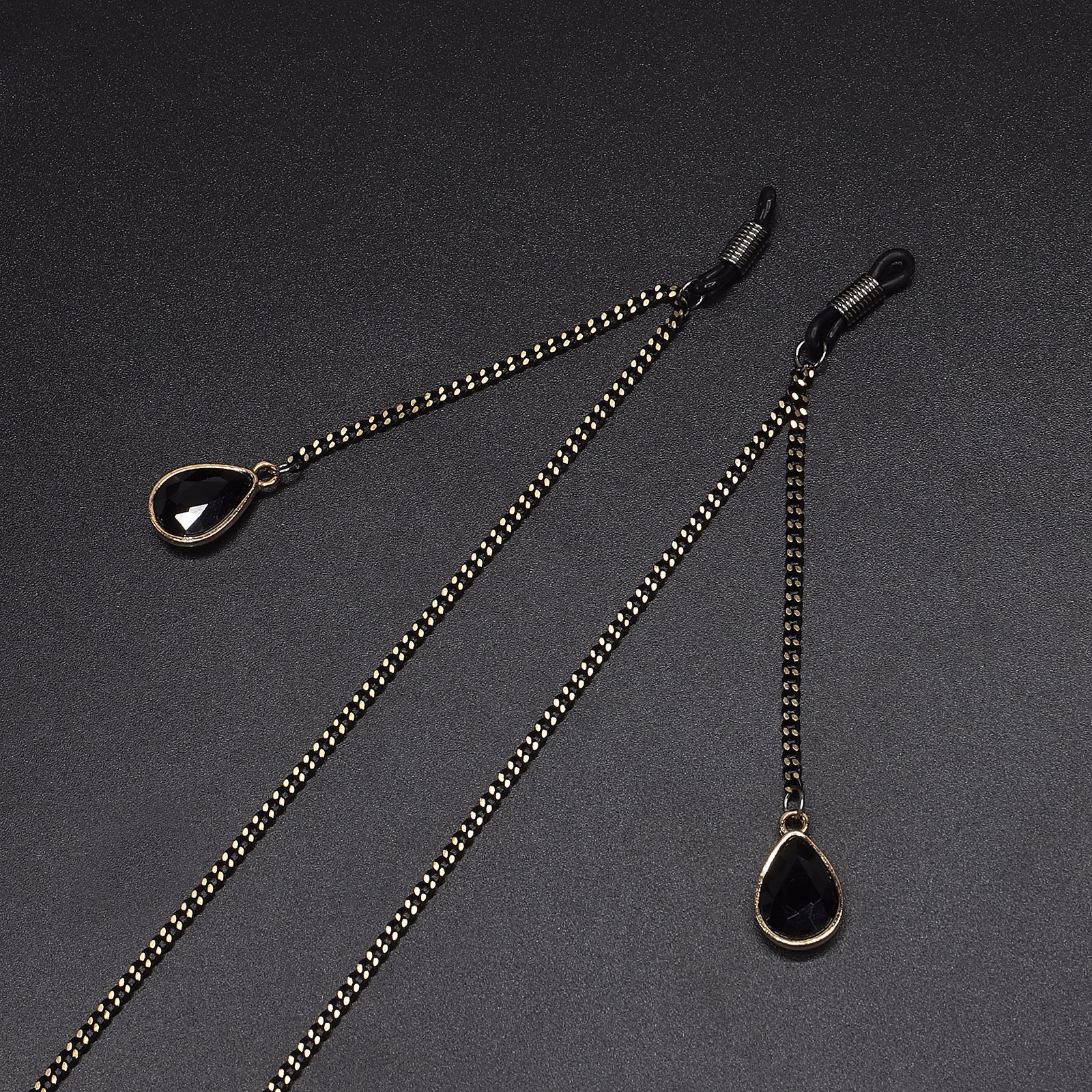 Black-colored metal non-slip chain, with pendant crystal water drop, for glasses and masks GL598