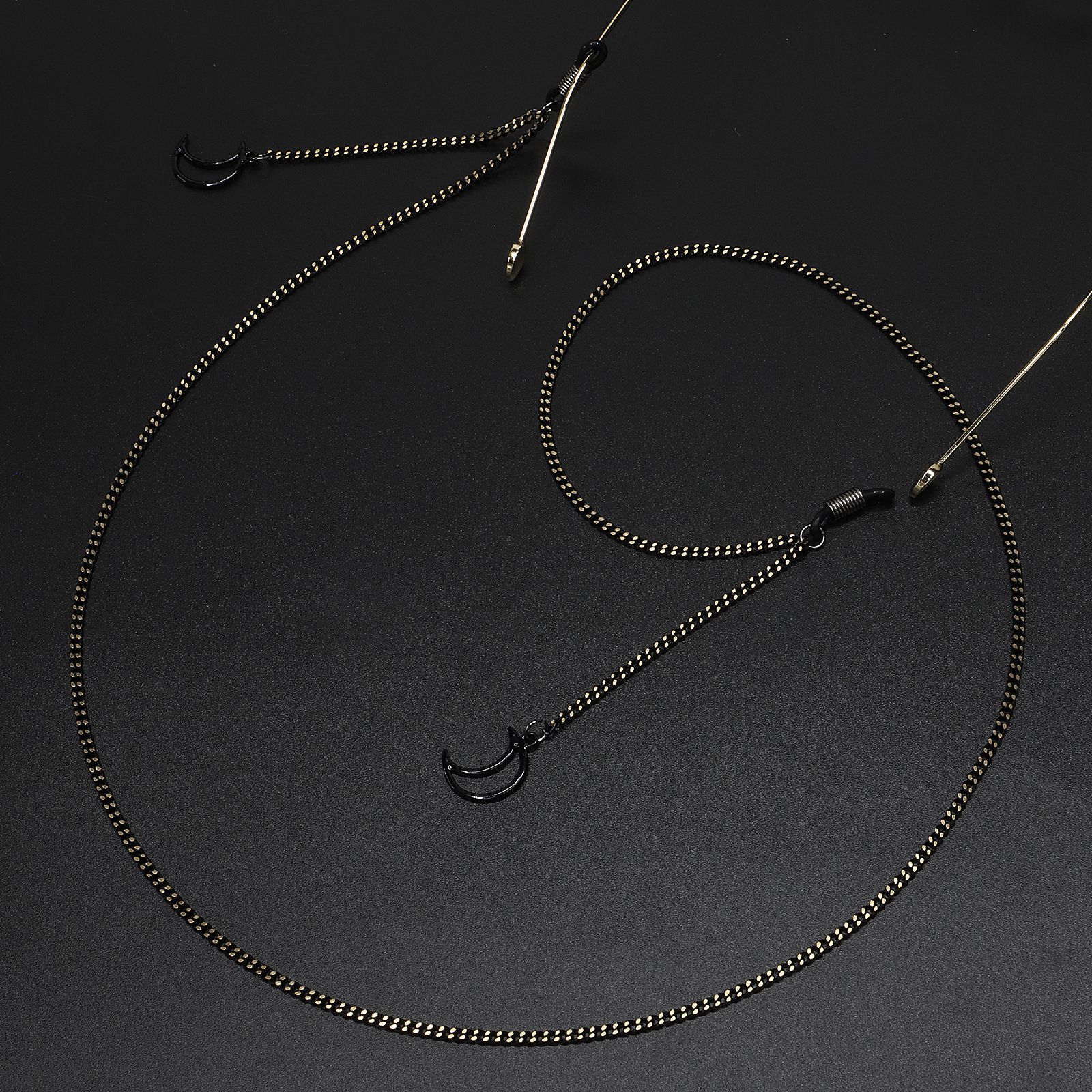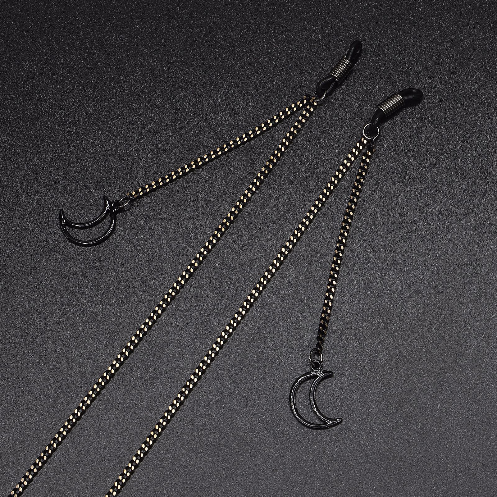 Black-colored metal non-slip chain, with pendant moon, for glasses and masks GL599
