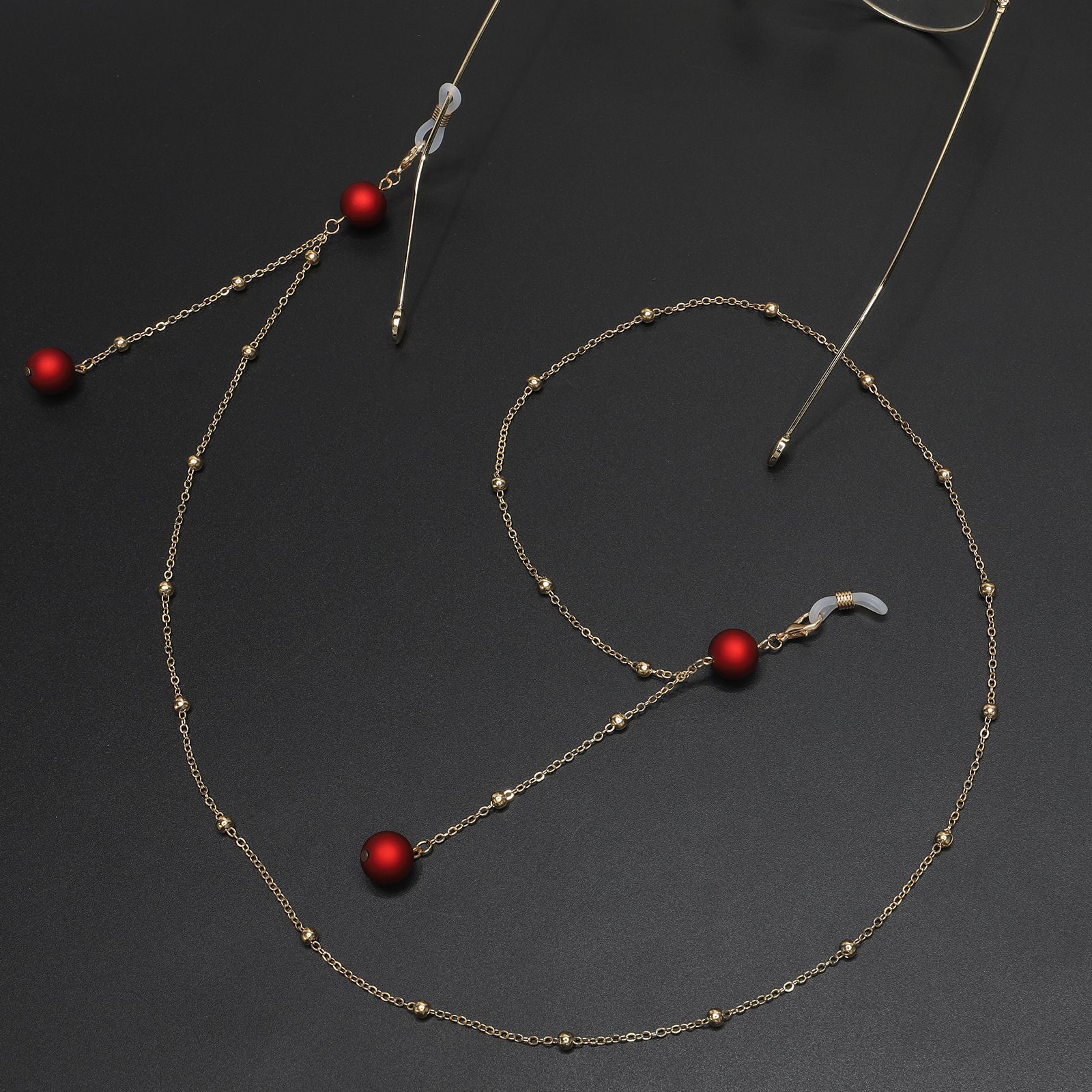 Metal non-slip chain, with red beads, for glasses and masks GL625