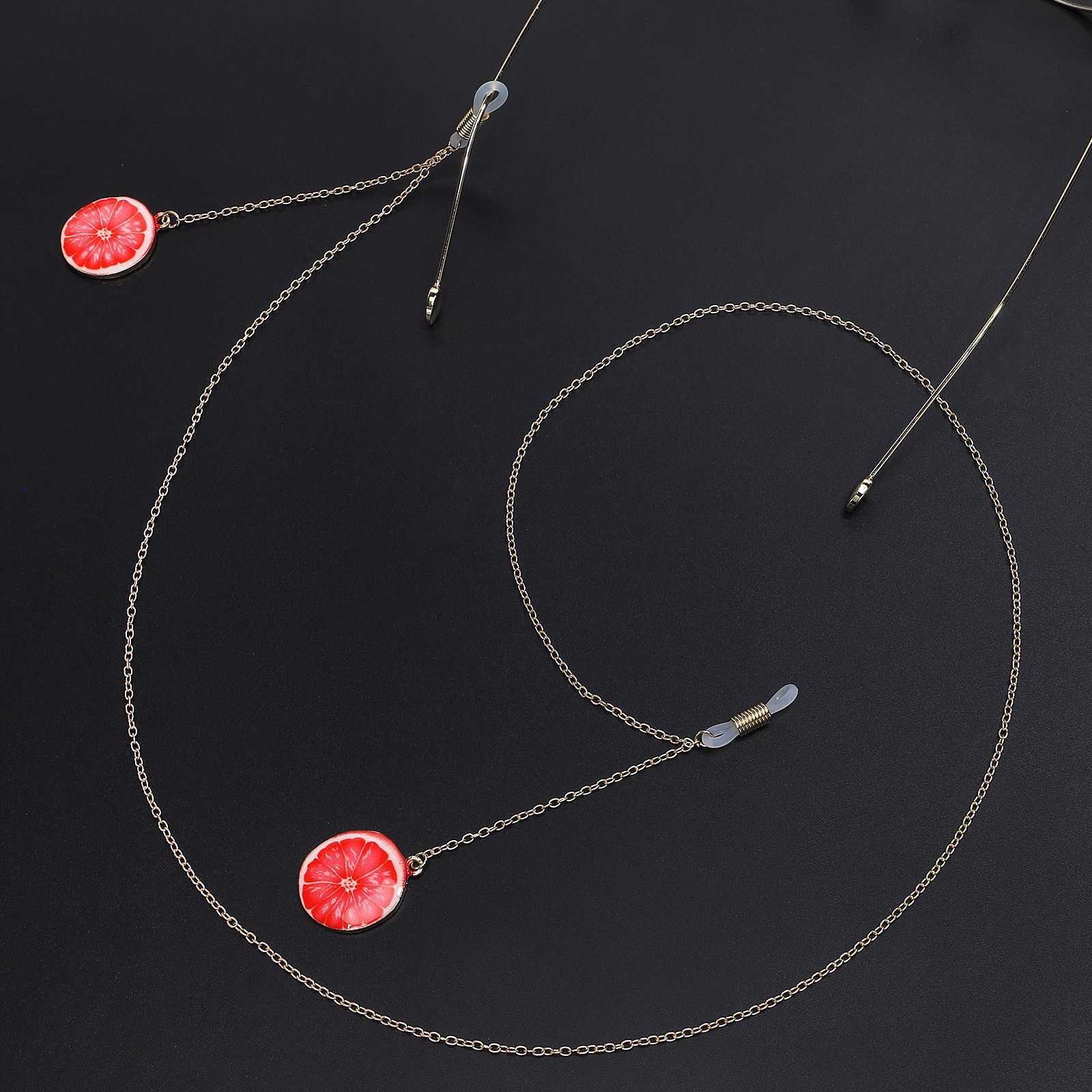 Gold-colored metal non-slip chain, with pendant grapefruit, for glasses and masks GL633