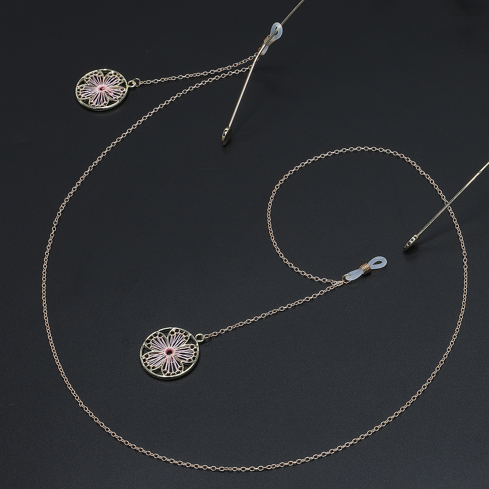 Gold-colored metal non-slip chain, with pendant flower, for glasses and masks GL638