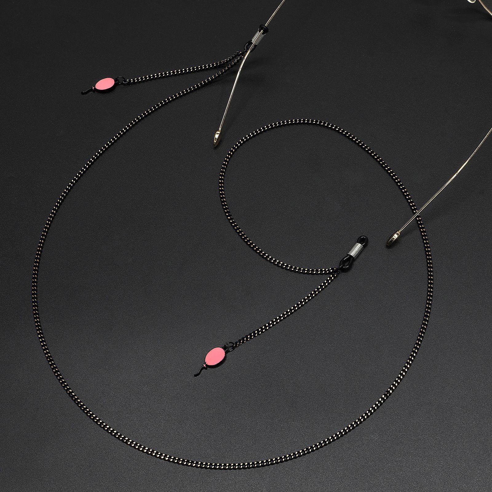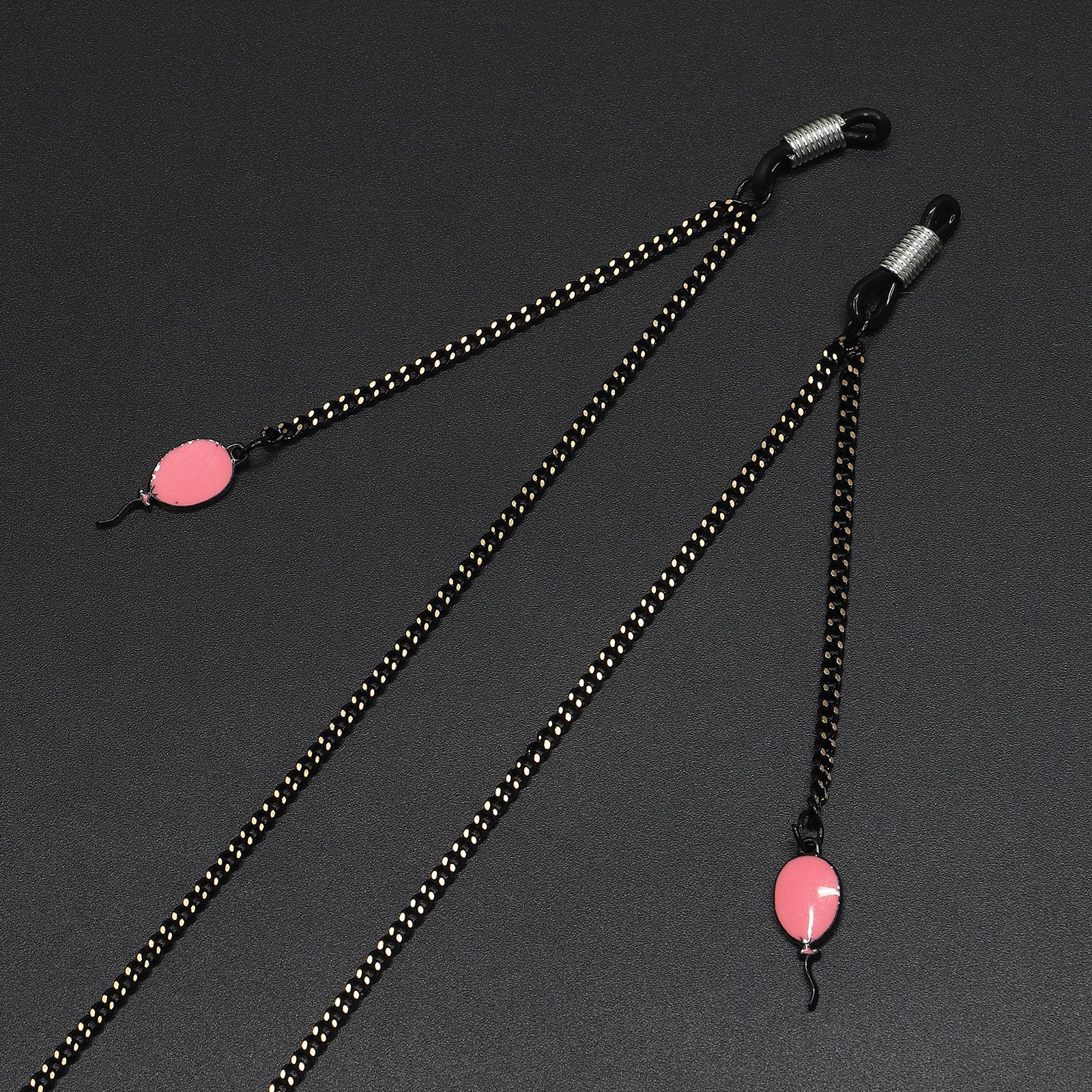 Black-colored metal non-slip chain, with pendant pink balloon, for glasses and masks GL648