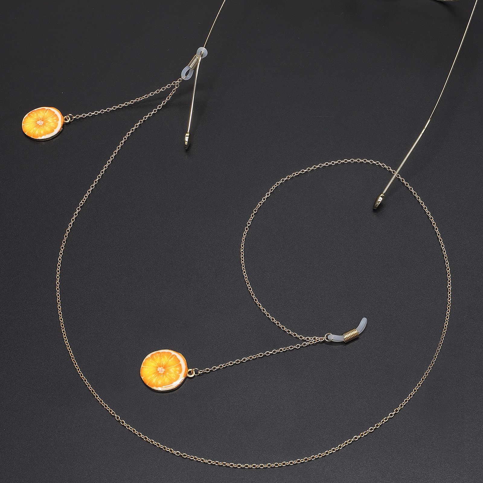 Gold-colored metal non-slip chain, with pendant orange, for glasses and masks GL657