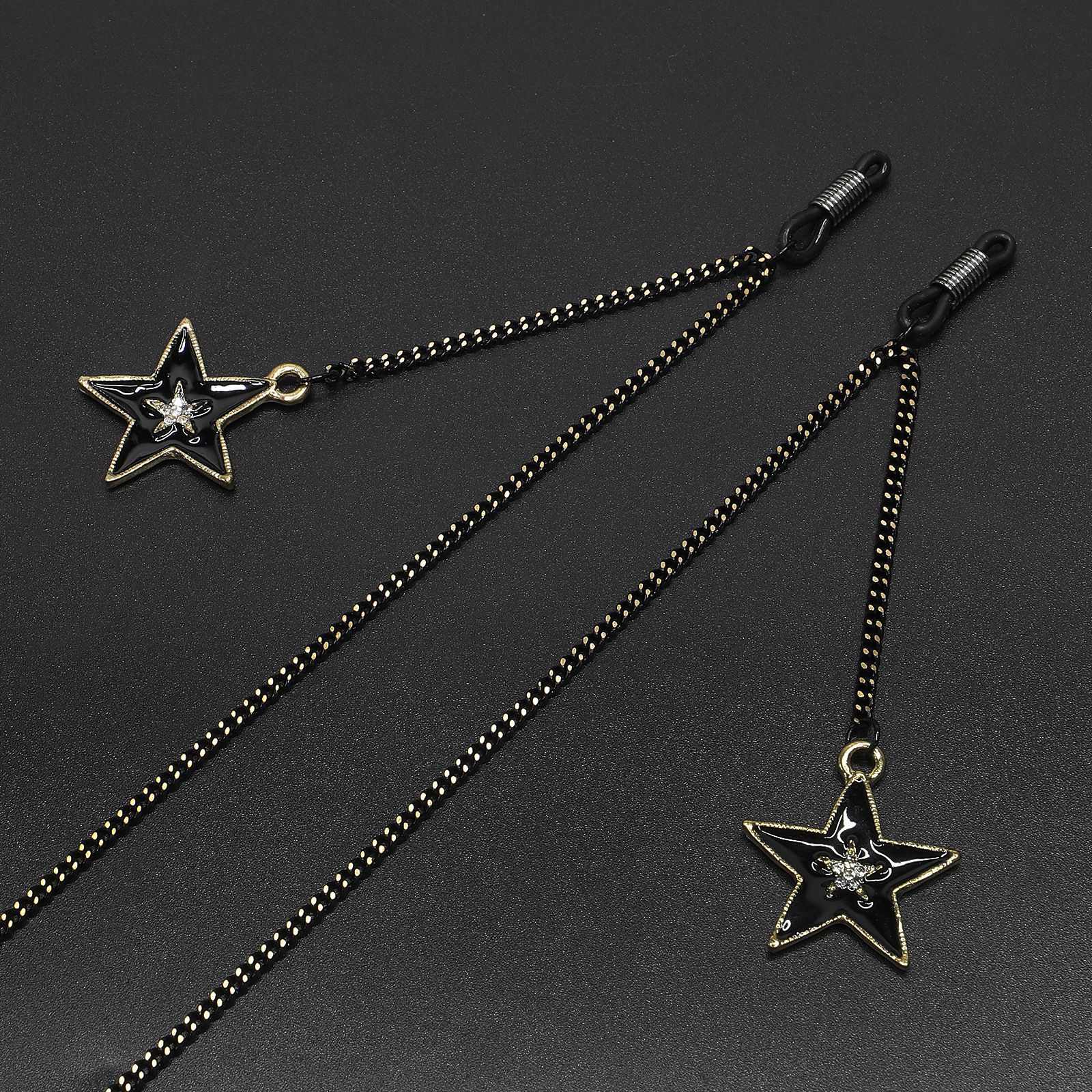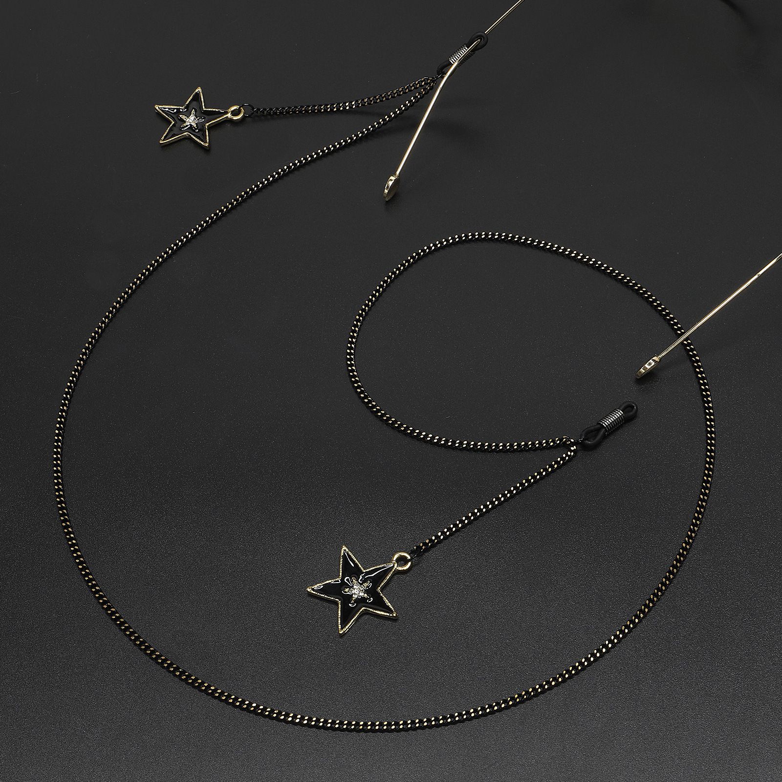 Black-colored metal non-slip chain, with pendant star with rhinestones, for glasses and masks GL676
