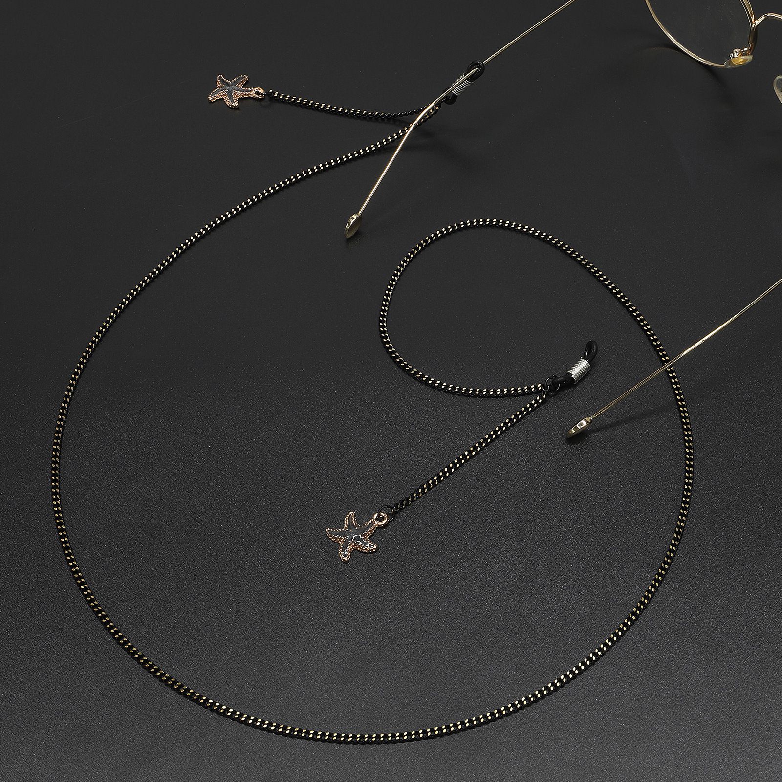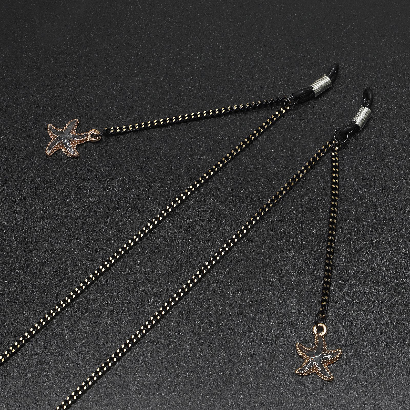 Black-colored metal non-slip chain, with pendant starfish, for glasses and masks GL677