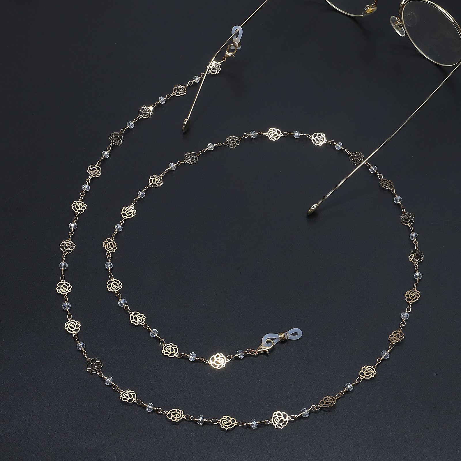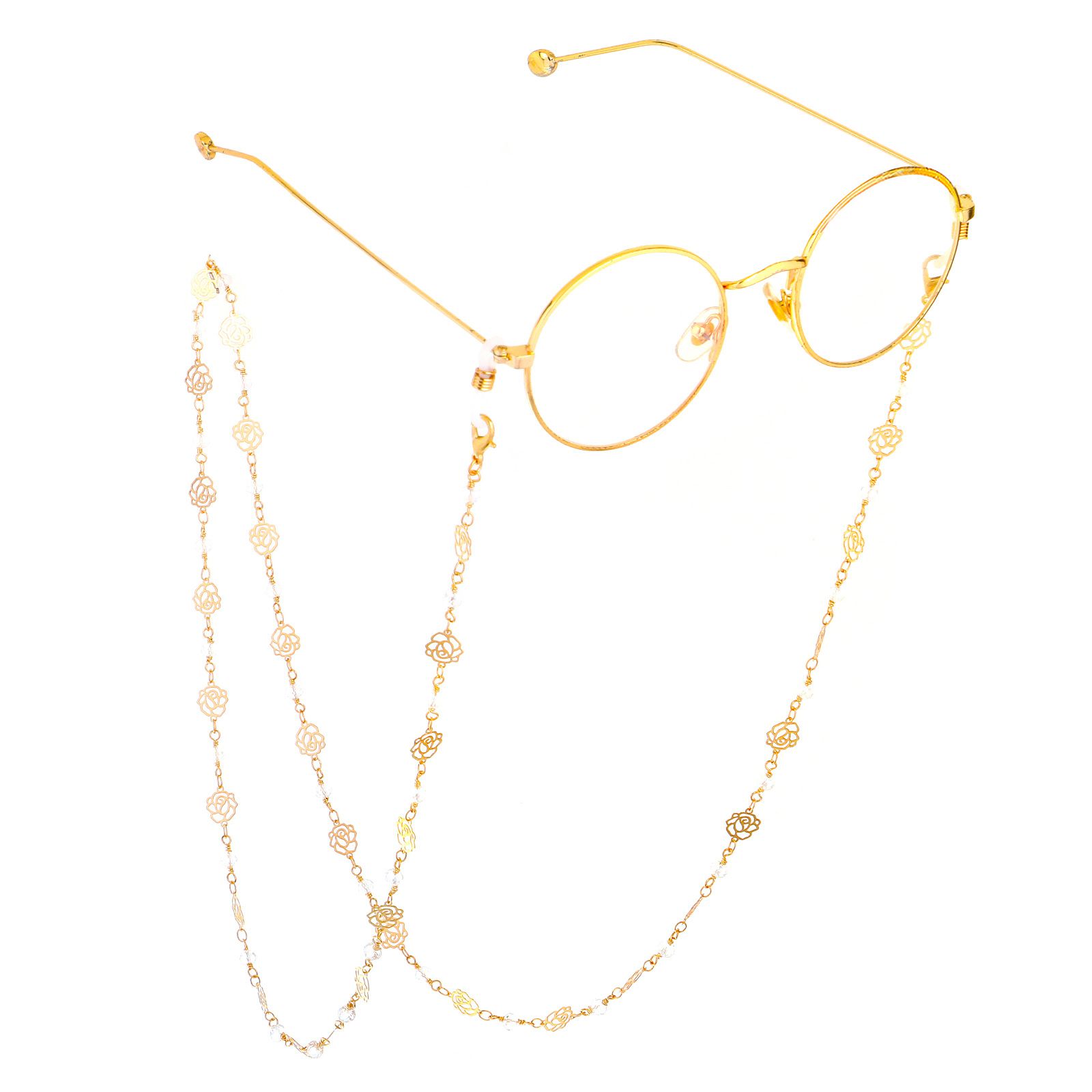 Gold-colored metal non-slip chain, with rose and crystal, for glasses and masks GL691