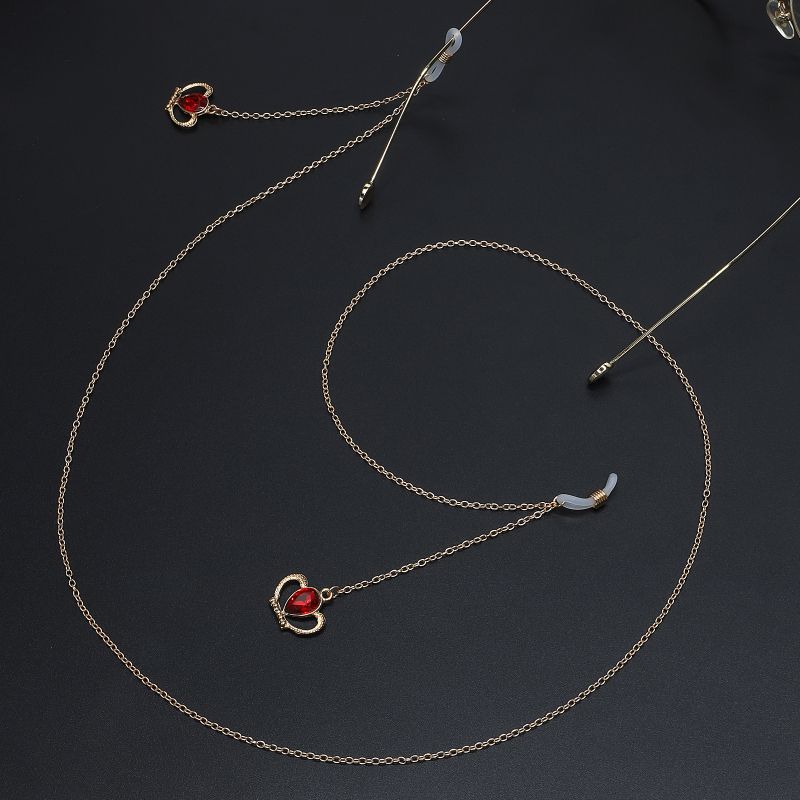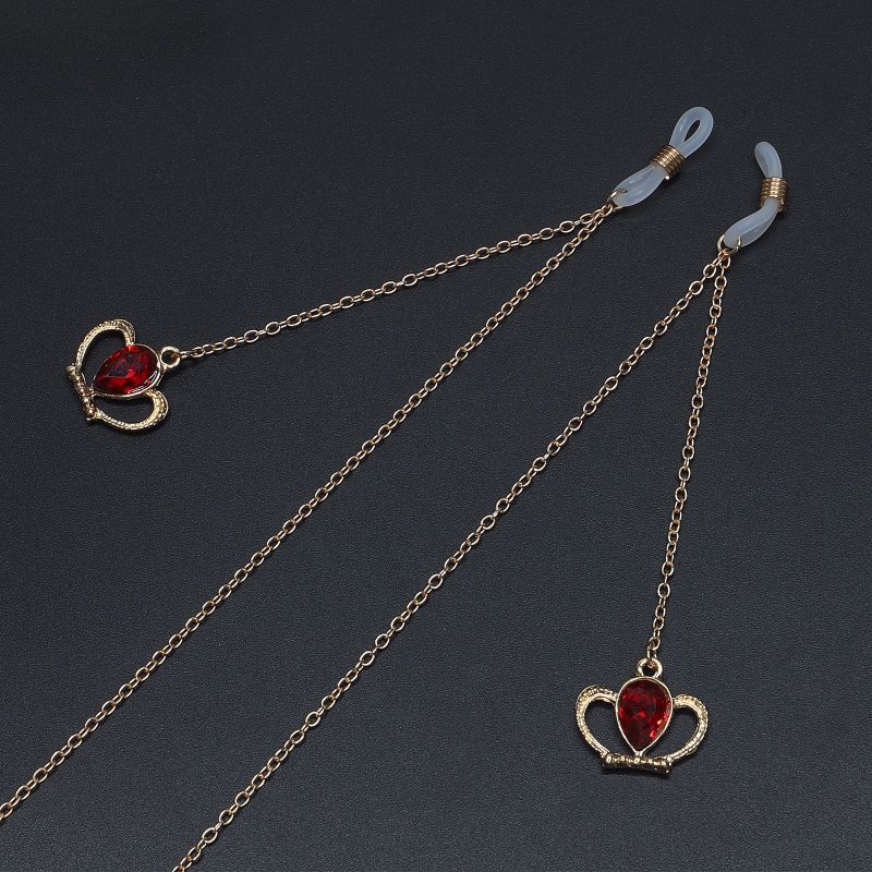 Gold-colored metal non-slip chain, with crown and crystal, for glasses and masks GL704