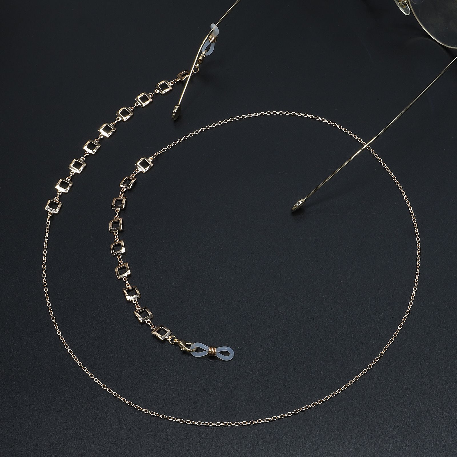 Gold-colored metal non-slip chain, with non-fading square, for glasses and masks GL714