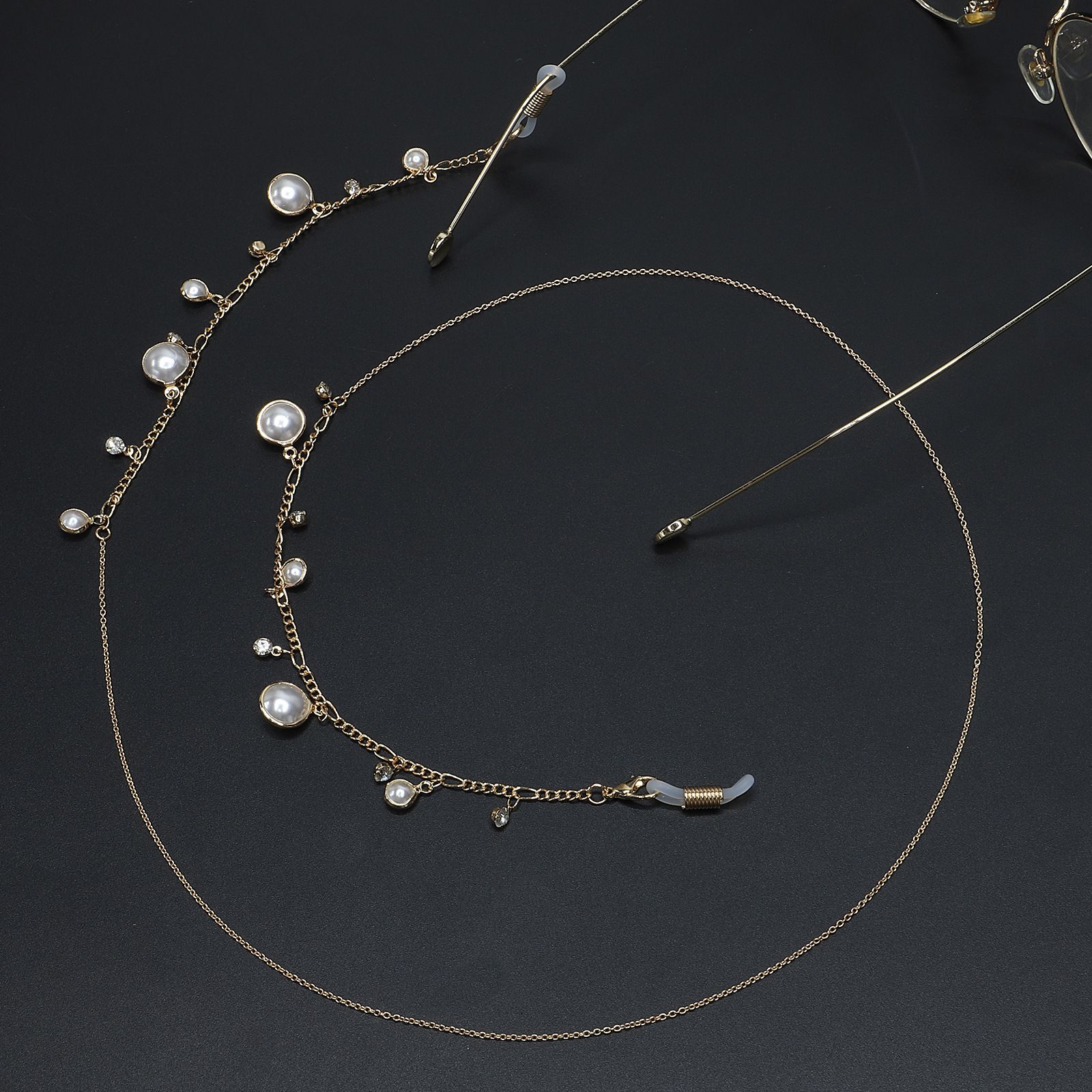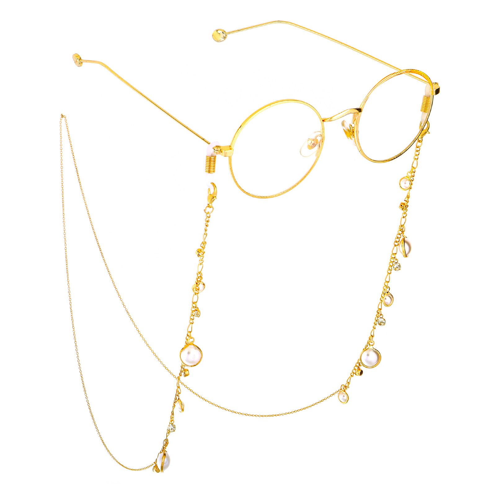Gold-colored metal non-slip chain, with pearl and rhinestone, for glasses and masks GL716