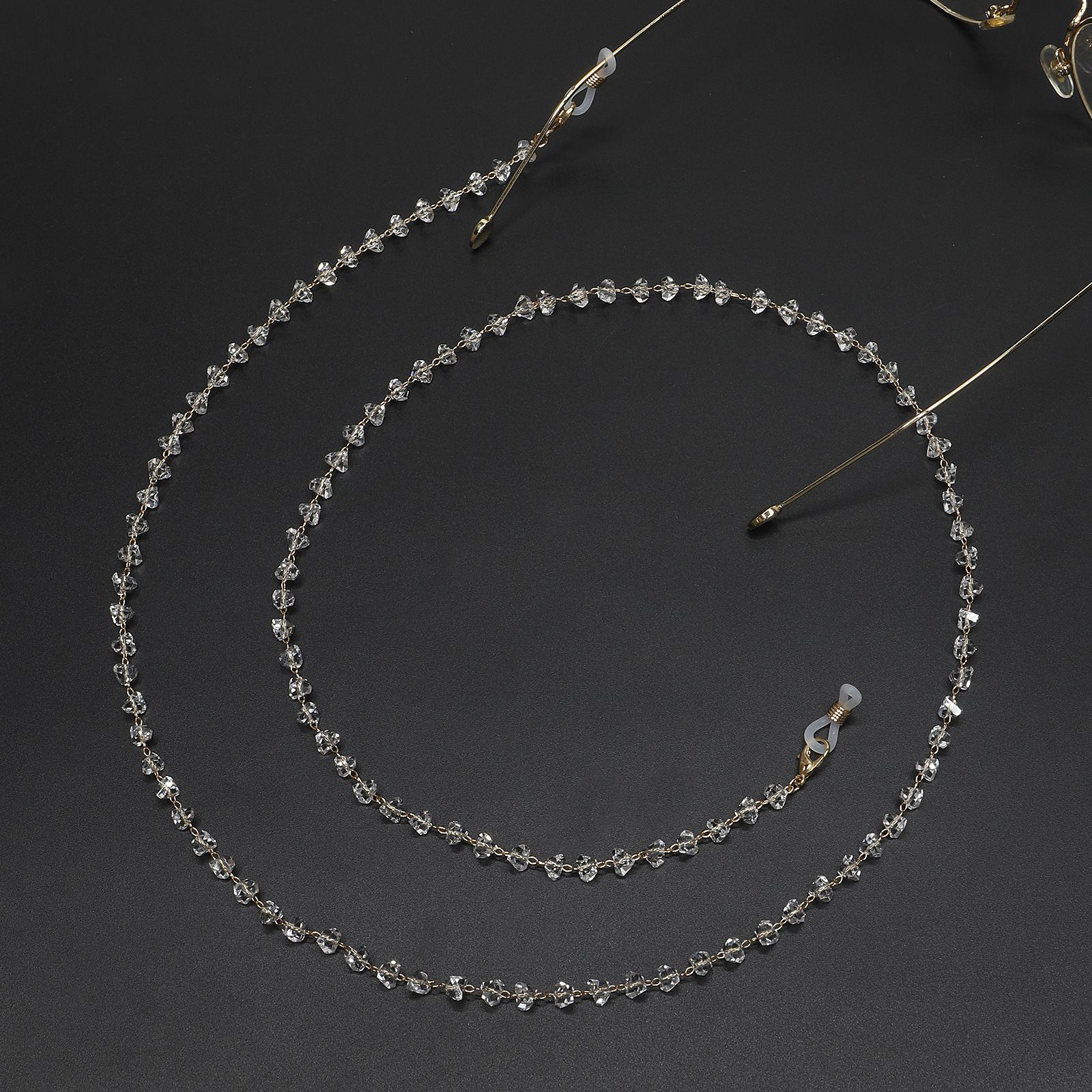 Gold-colored metal non-slip chain, with crystal, for glasses and masks GL720