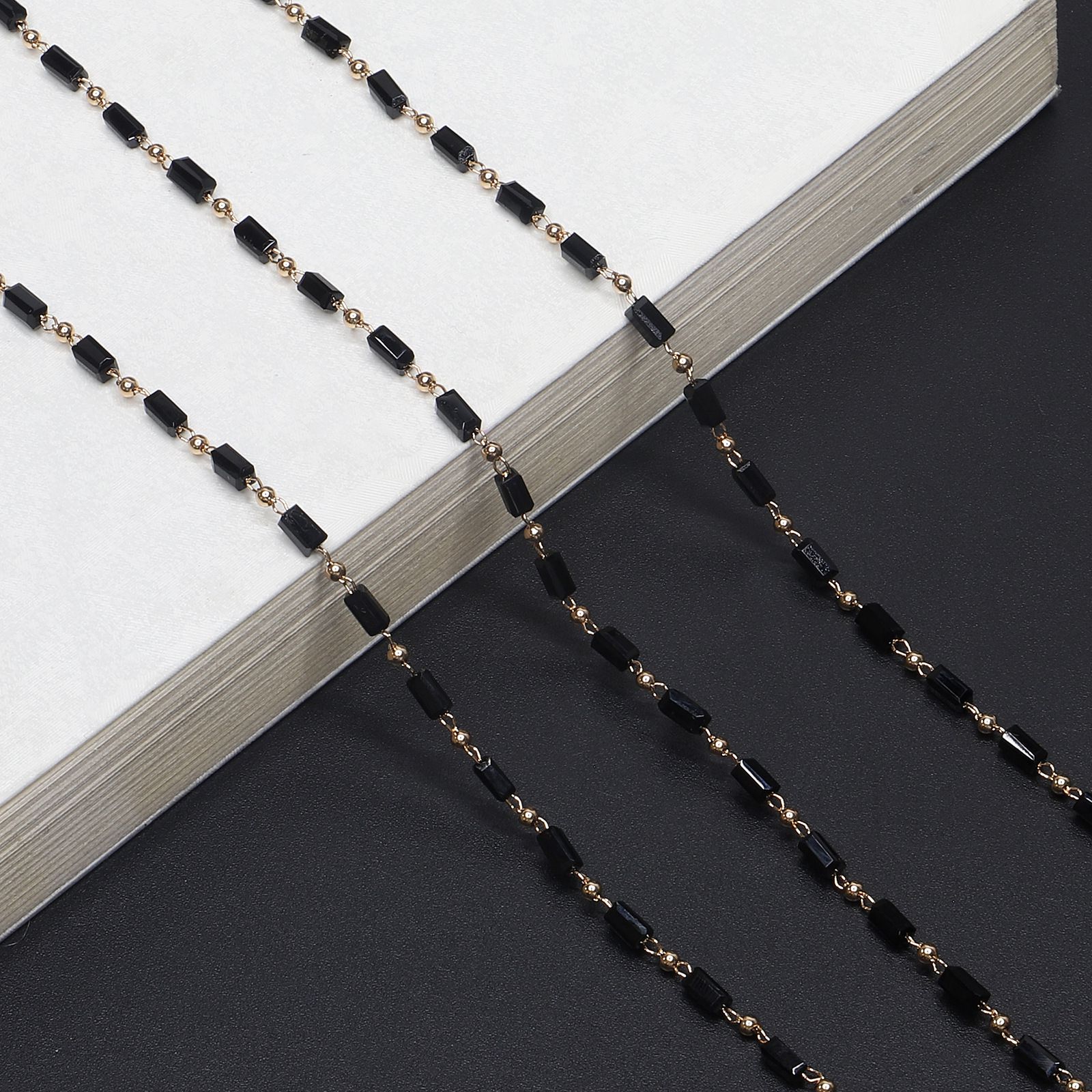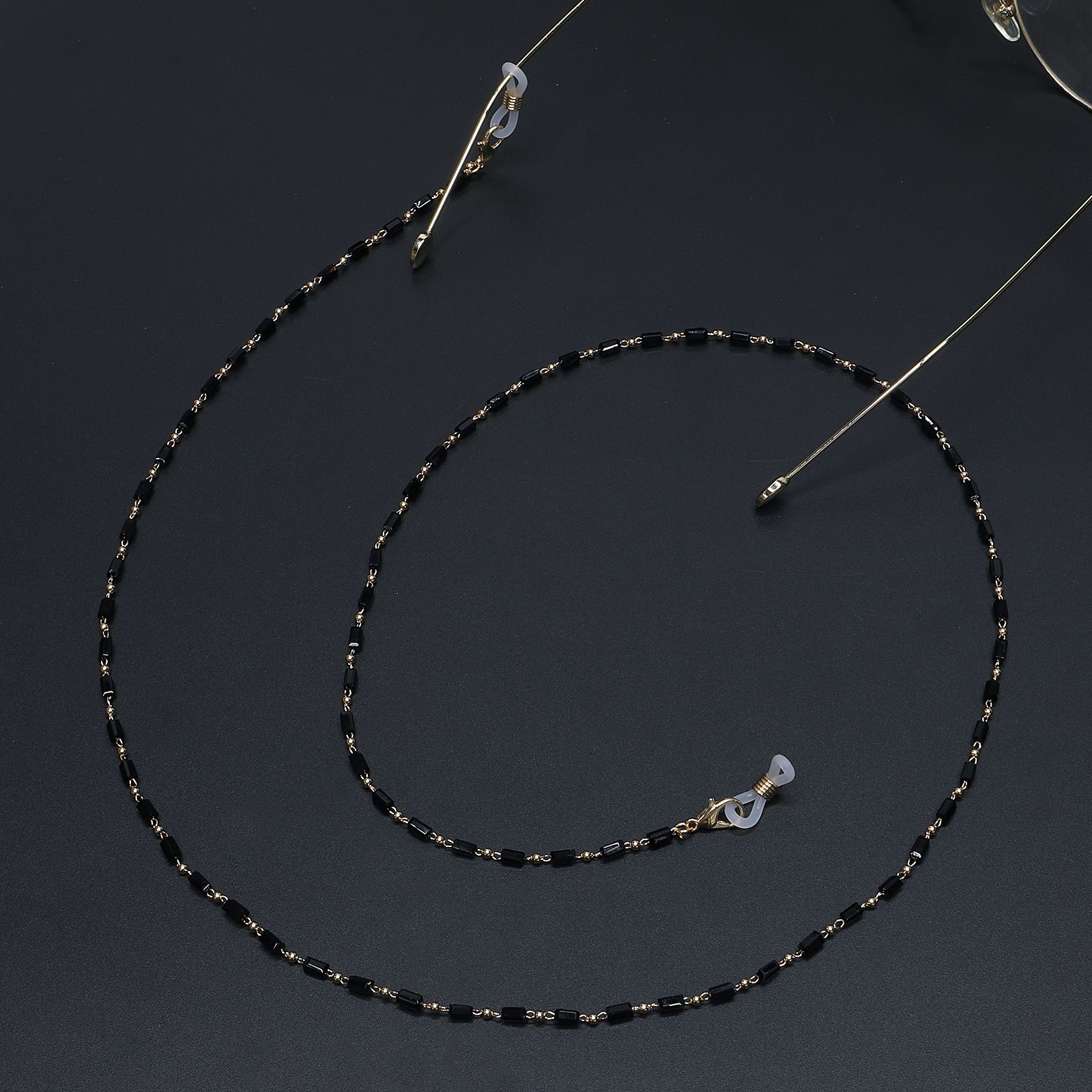 Metal non-slip chain, with black crystal, for glasses and masks GL721