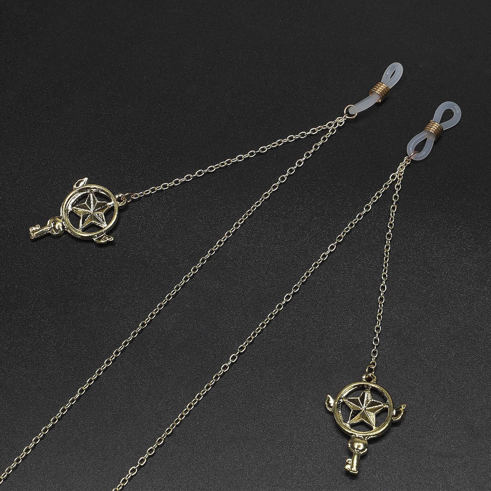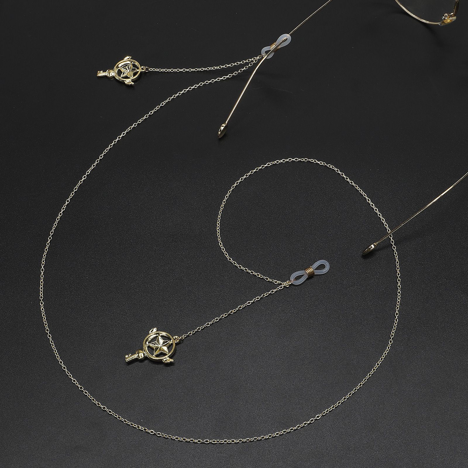 Gold-colored metal non-slip chain, with pendant five-star, for glasses and masks GL736
