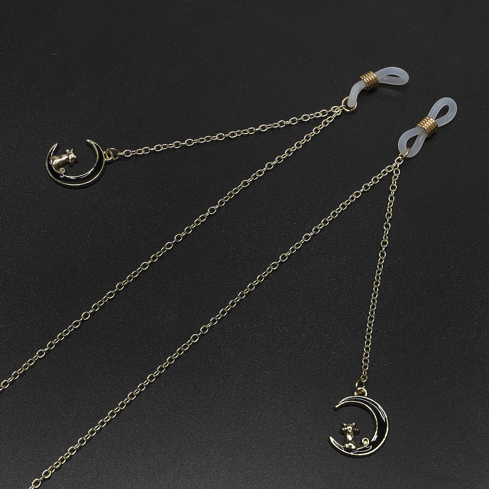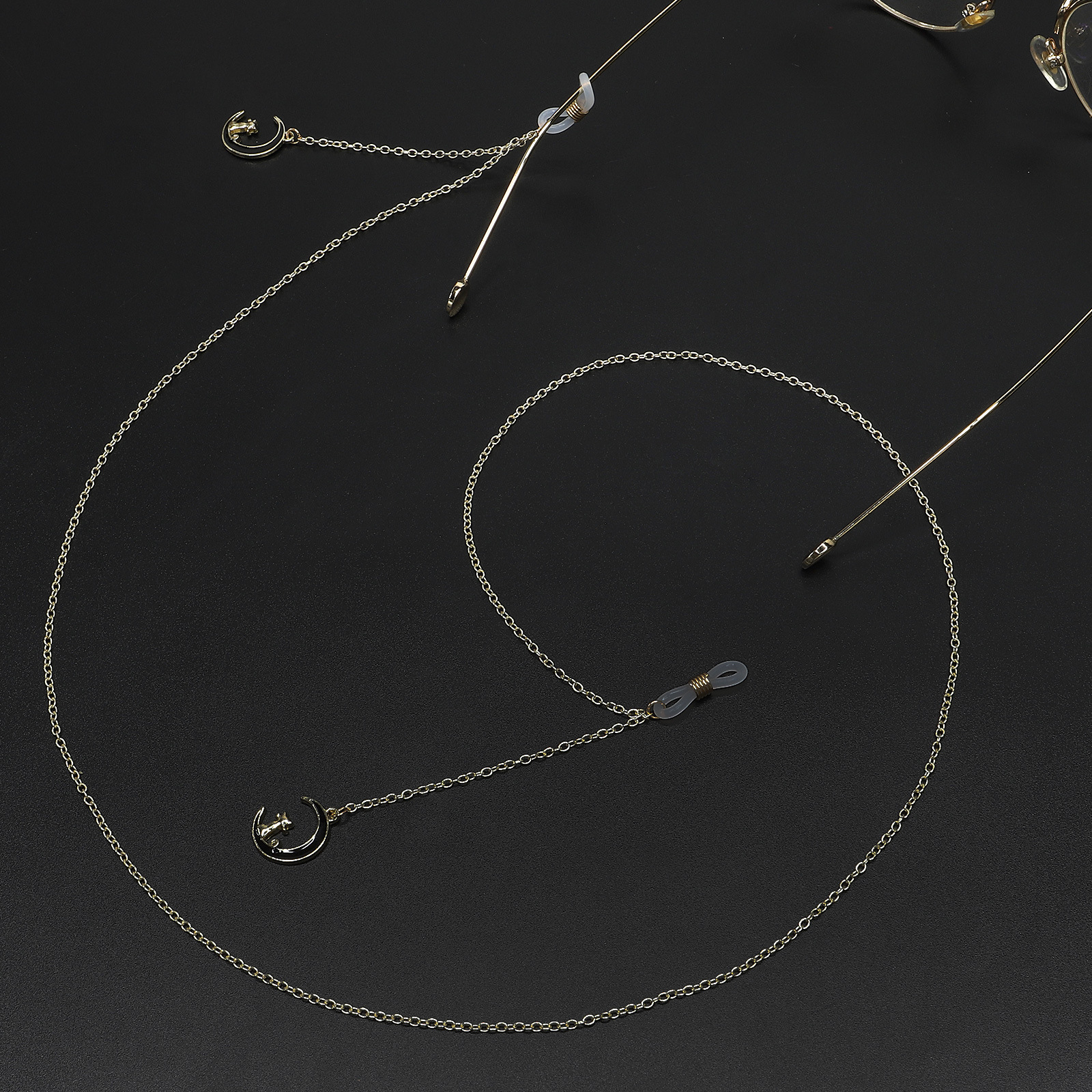Gold-colored metal non-slip chain, with pendant moon and cat, for glasses and masks GL737