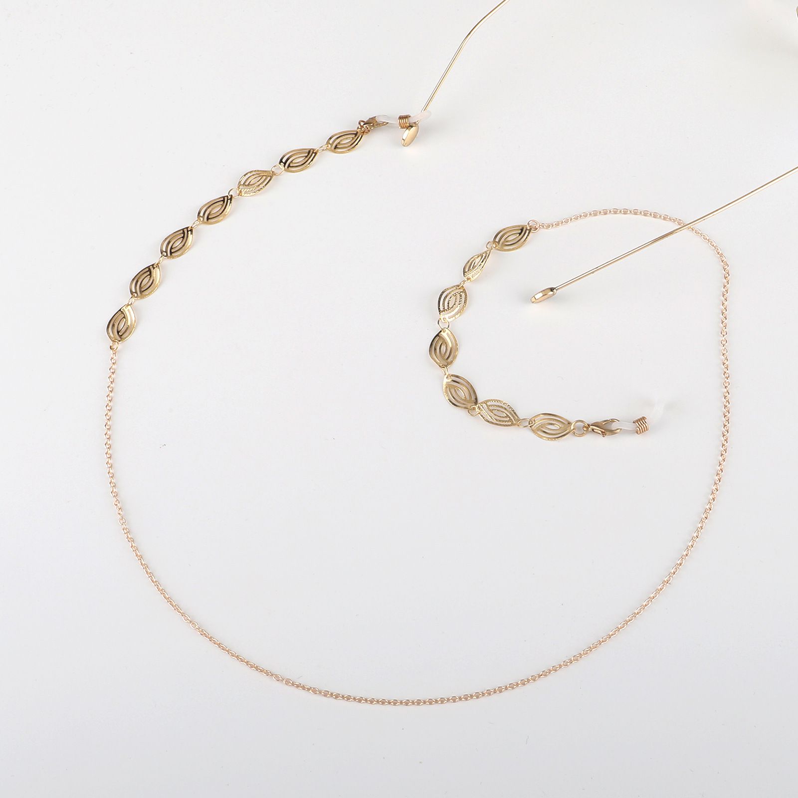 Gold-colored metal non-slip chain, with hollow oval, for glasses and masks GL747