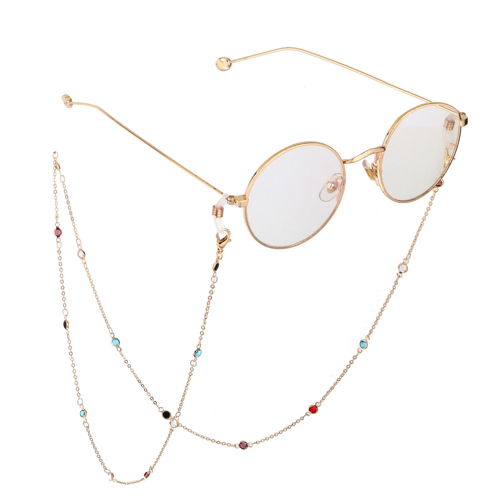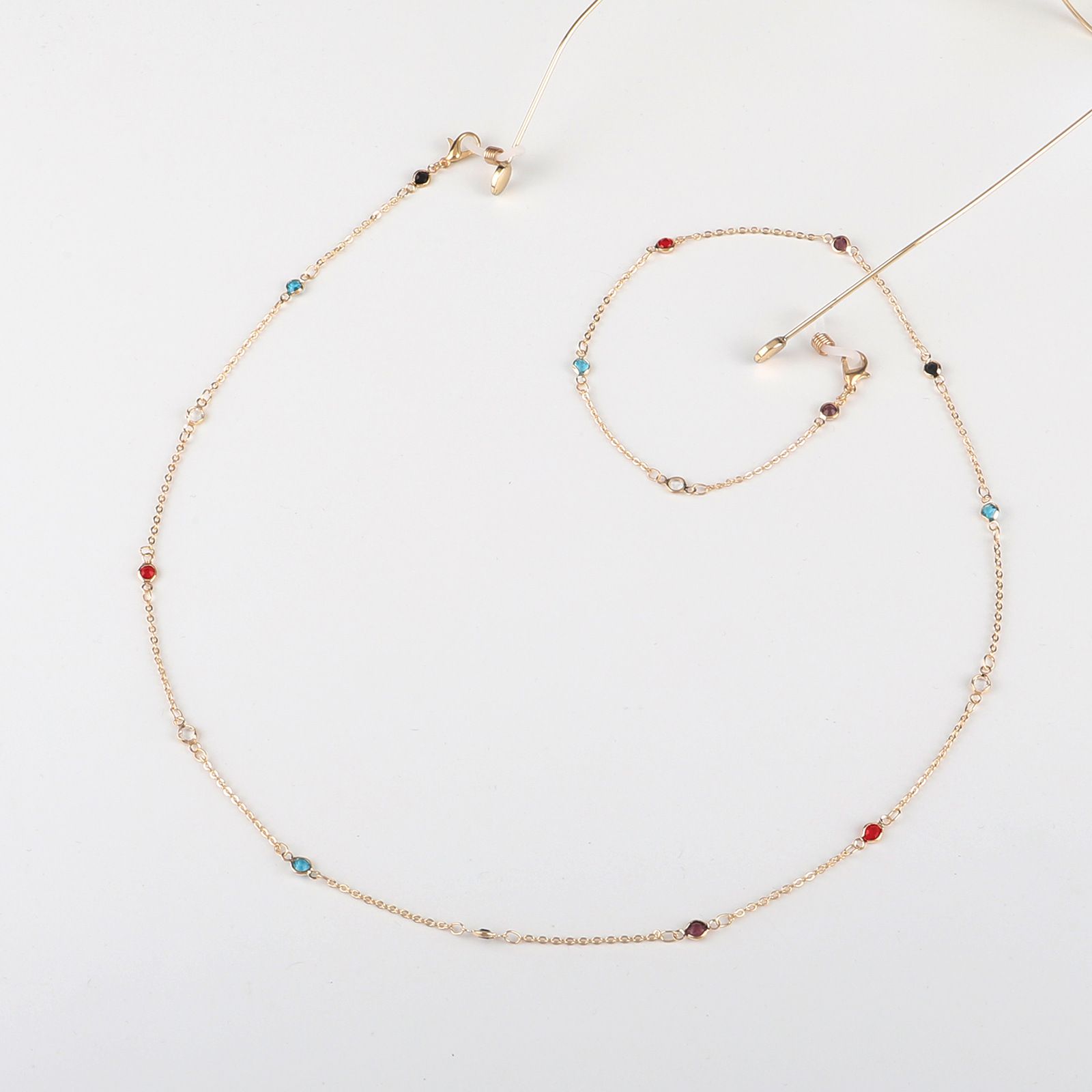 Gold-colored metal non-slip chain, with colorful glass beads, for glasses and masks GL749