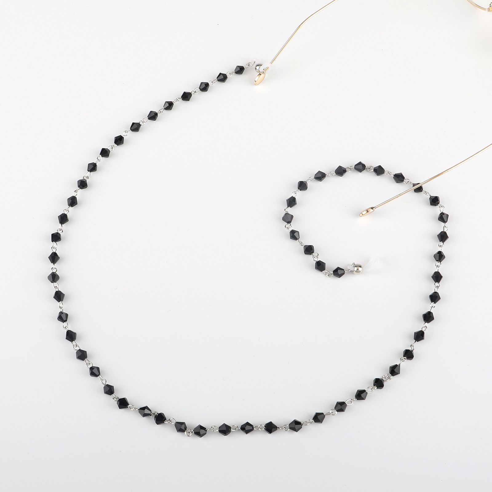 Metal non-slip chain, with black and white crystal, for glasses and masks GL752