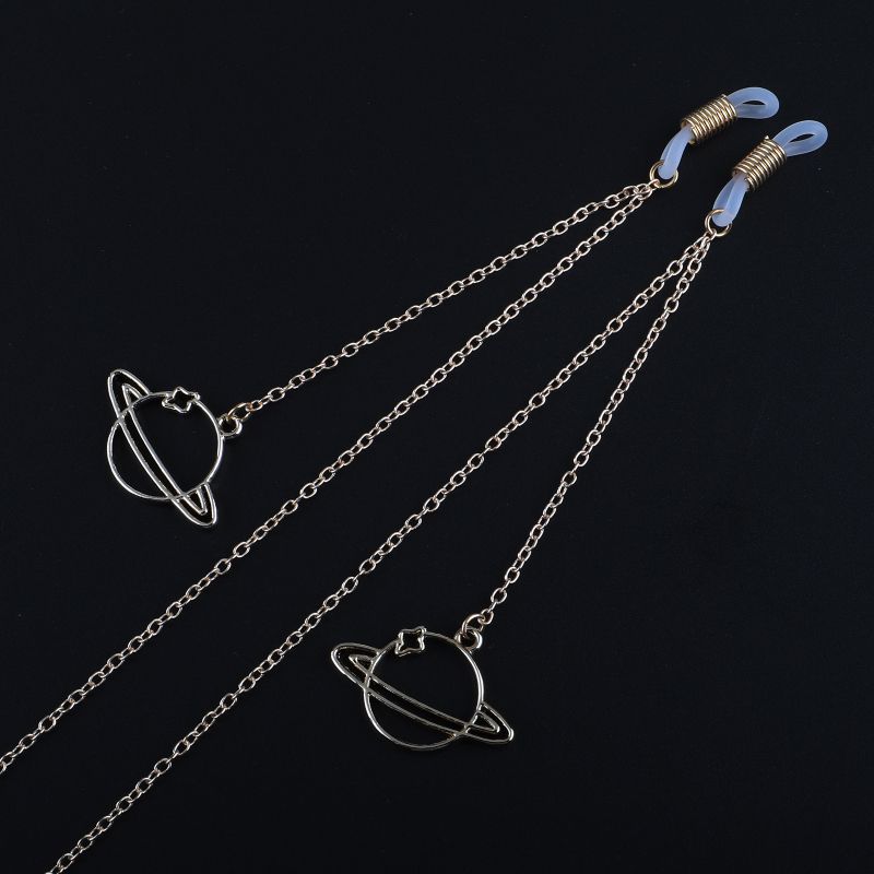 Gold-colored metal non-slip chain, with a planet pendant, for glasses and masks GL761