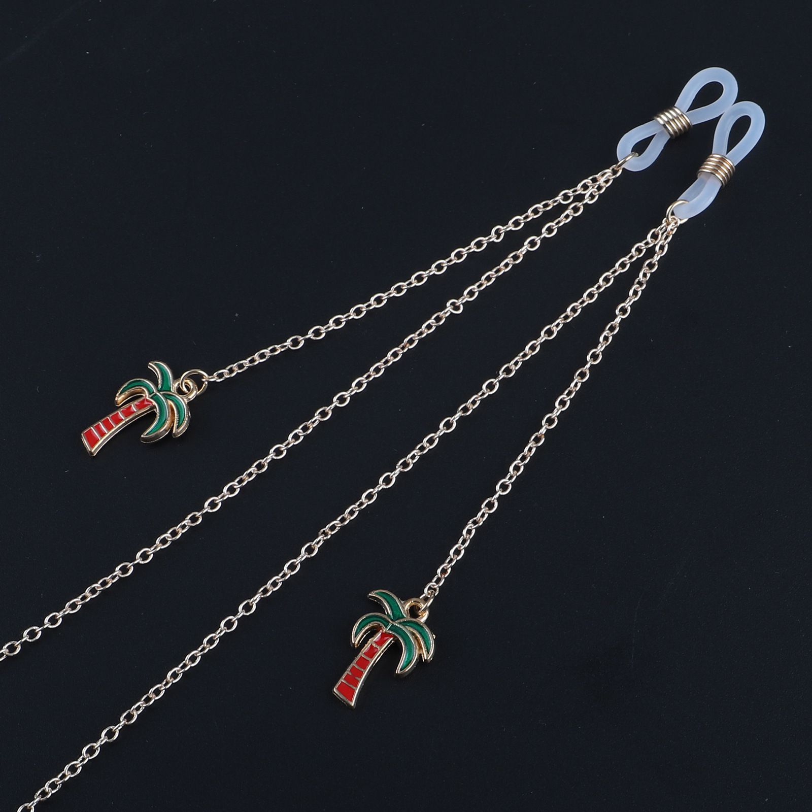 Gold-colored metal non-slip chain, with pendant coconut tree, for glasses and masks GL762