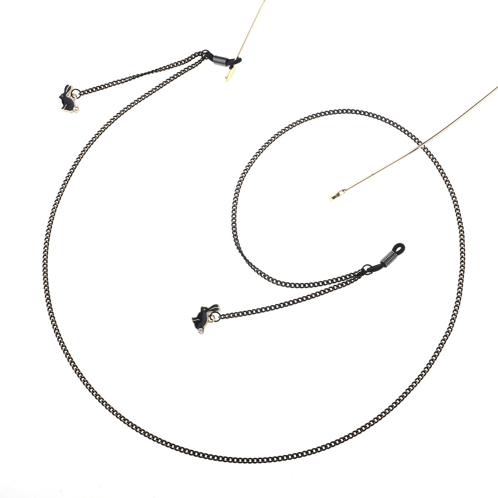 Black-colored metal non-slip chain, with pendant rabbit, for glasses and masks GL776