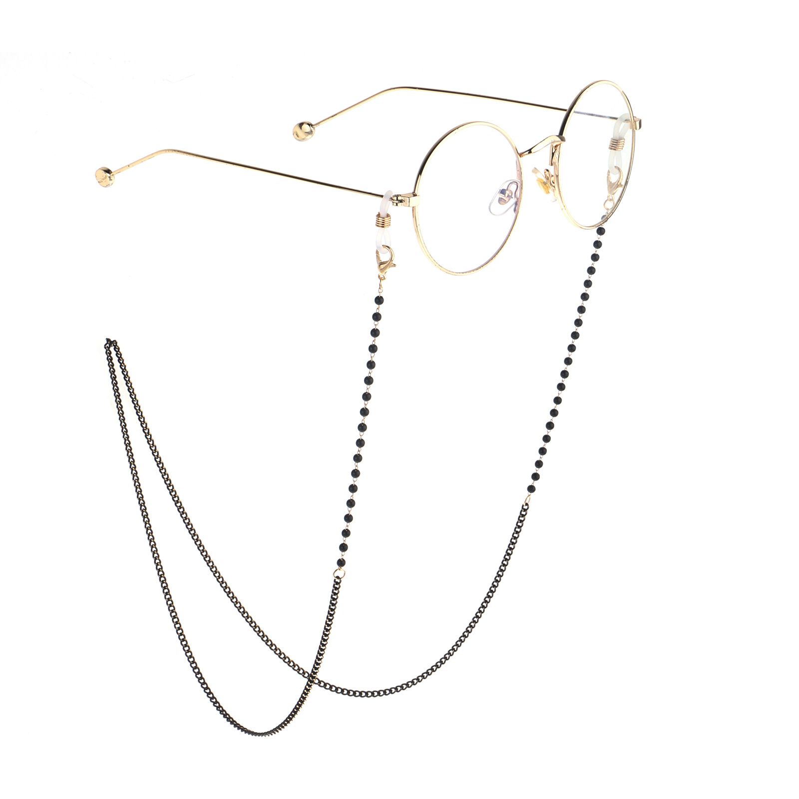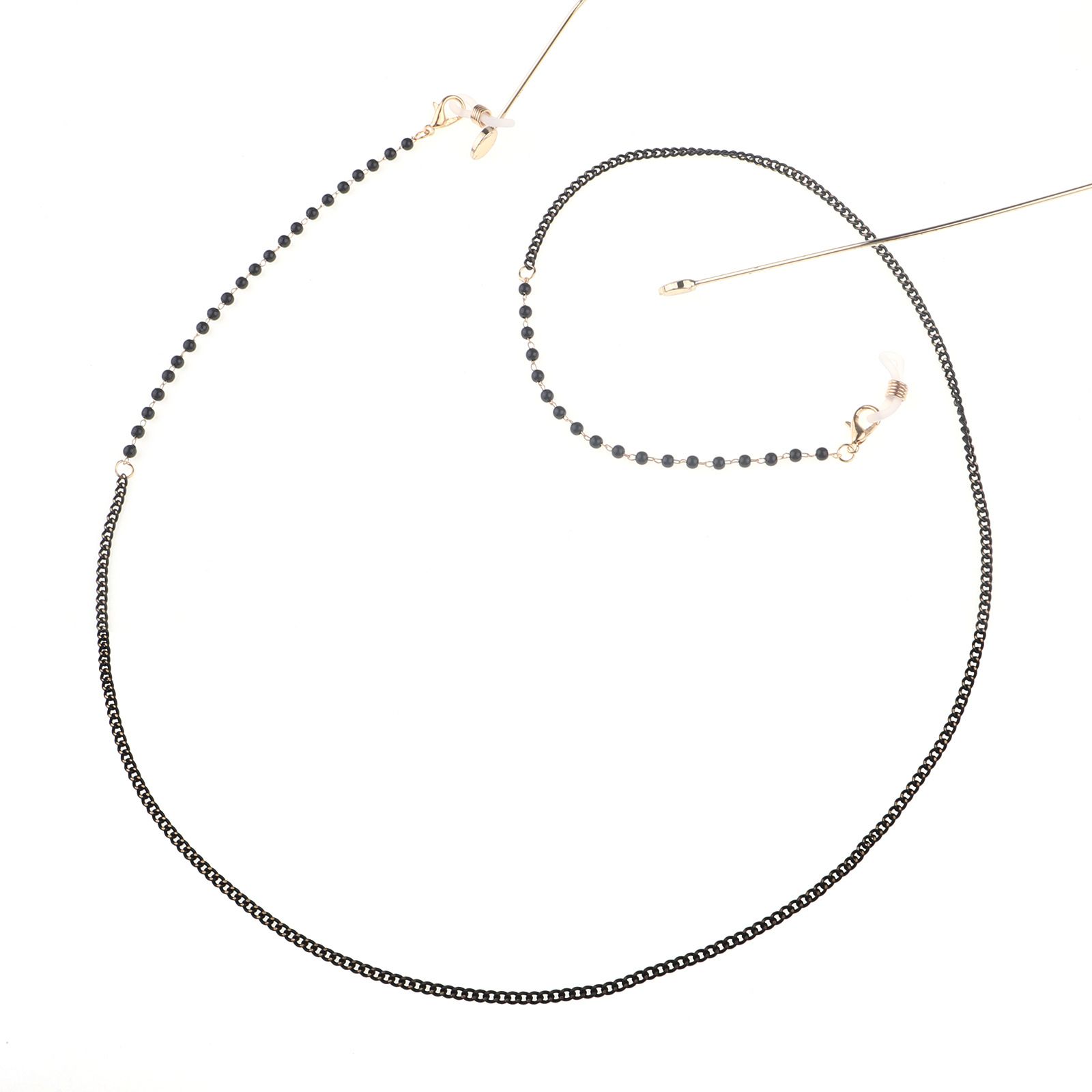 Gold-colored metal non-slip chain, with black pearl, for glasses and masks GL780
