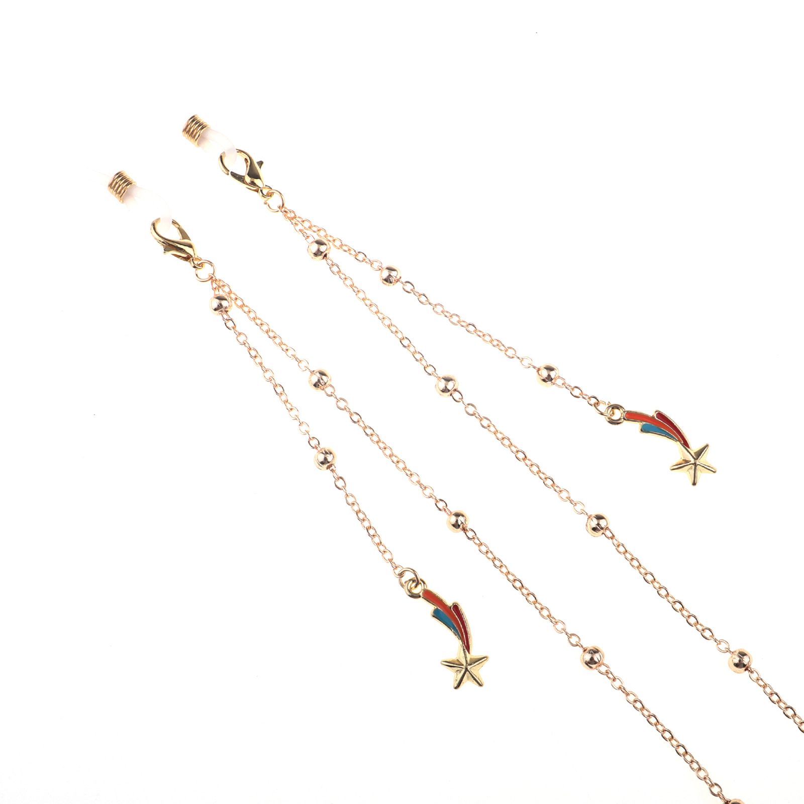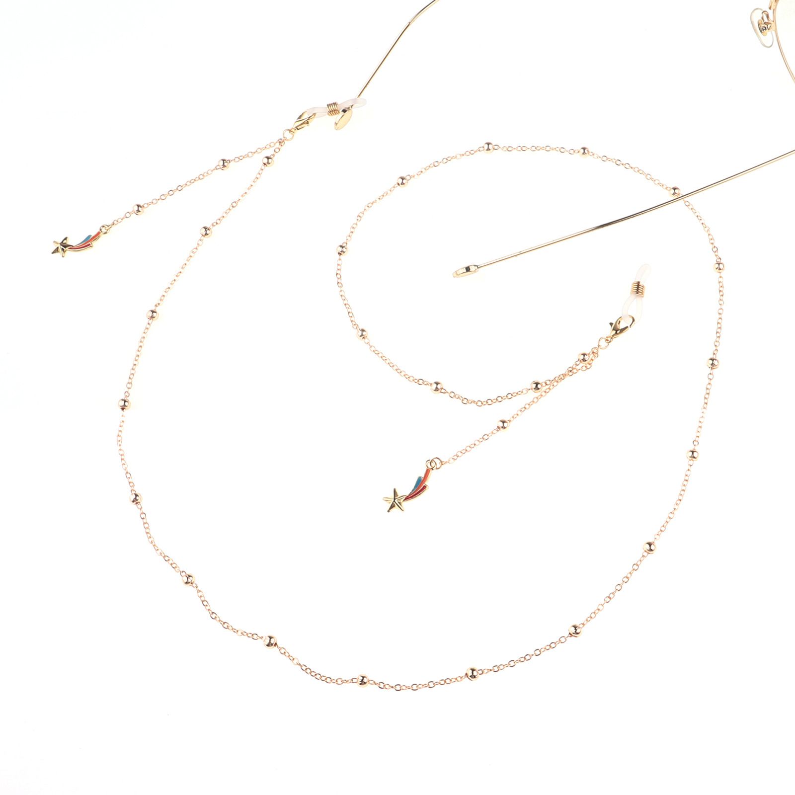 Gold-colored metal non-slip chain, with star and beads, for glasses and masks GL785