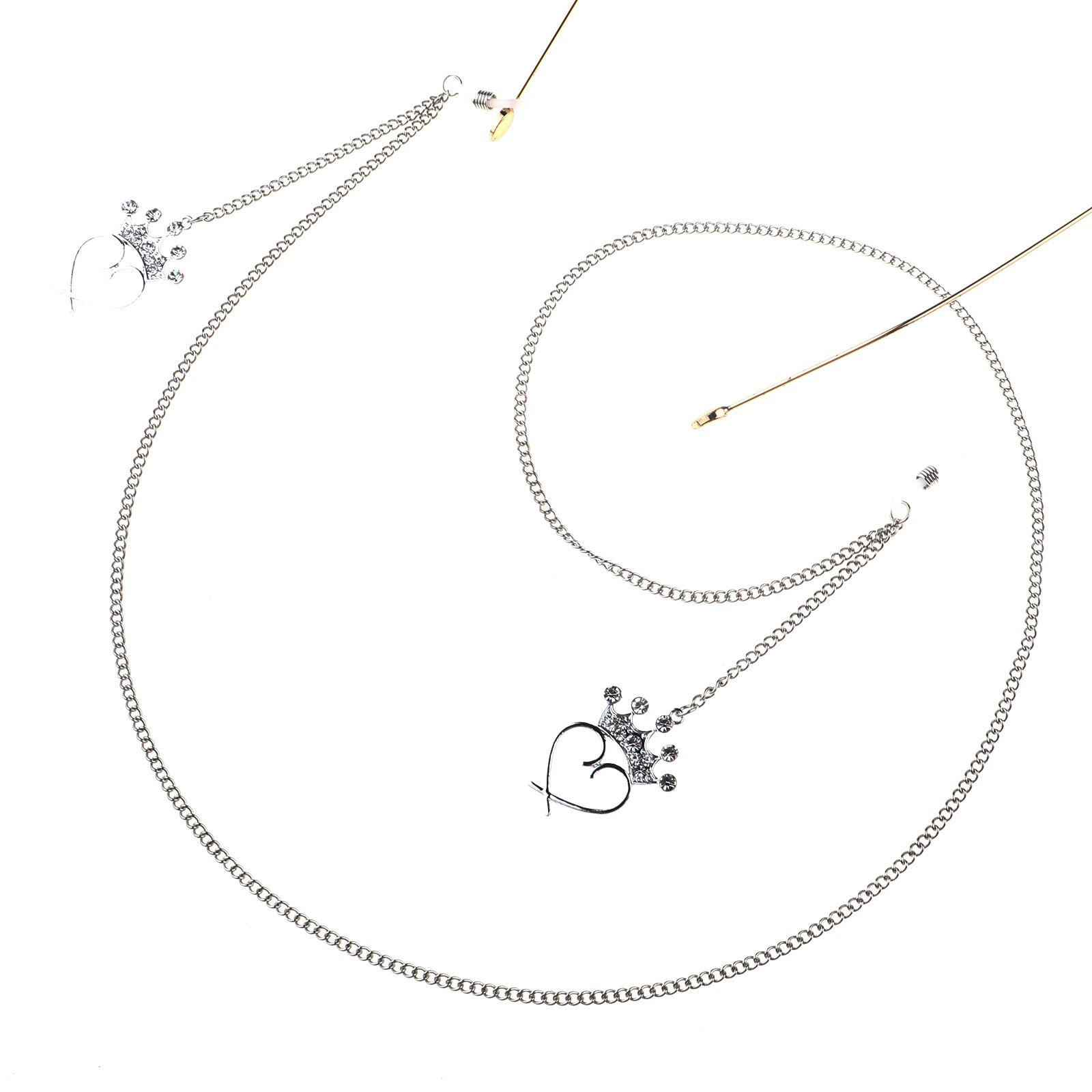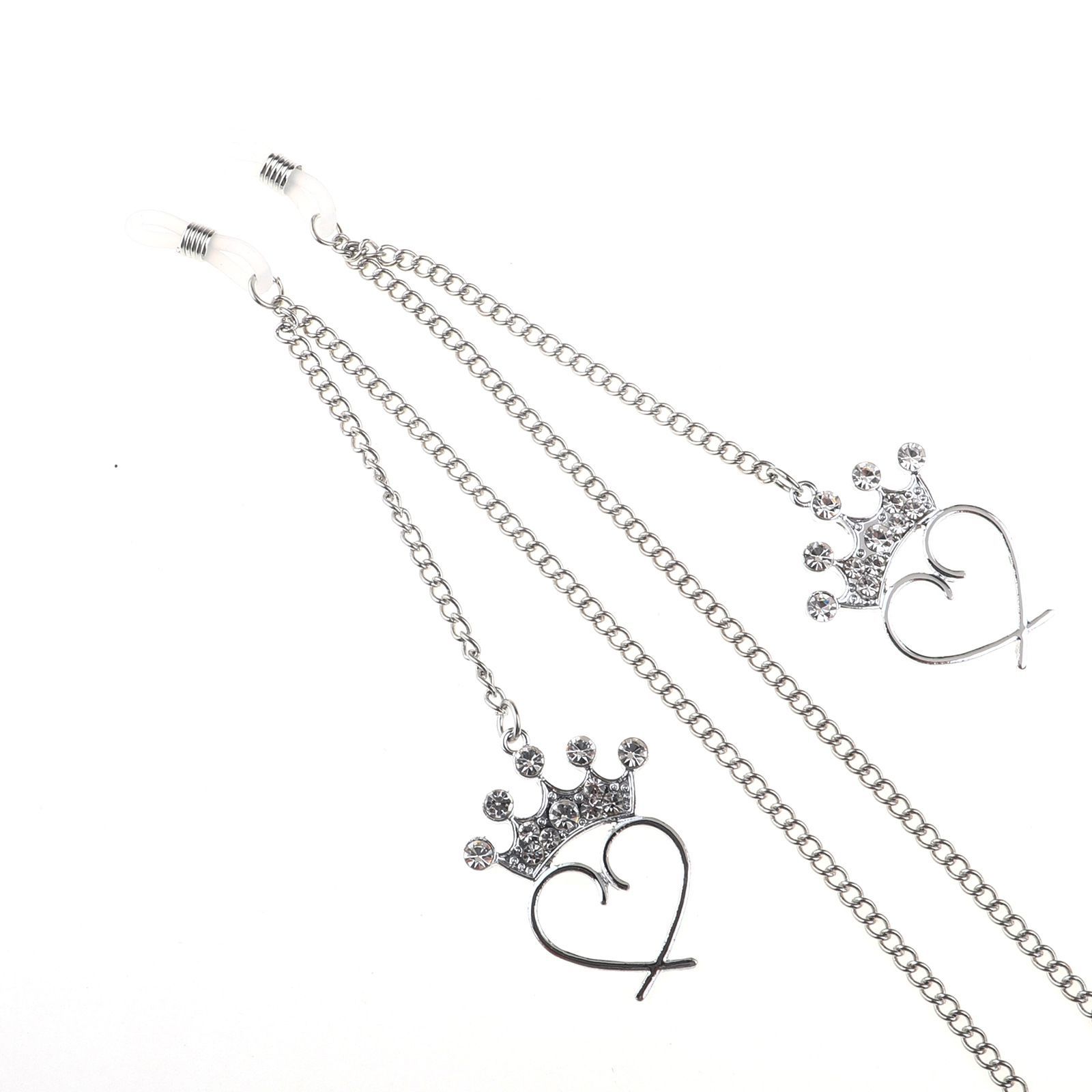 Silver-colored metal non-slip chain, with crown heart-shaped, for glasses and masks GL790