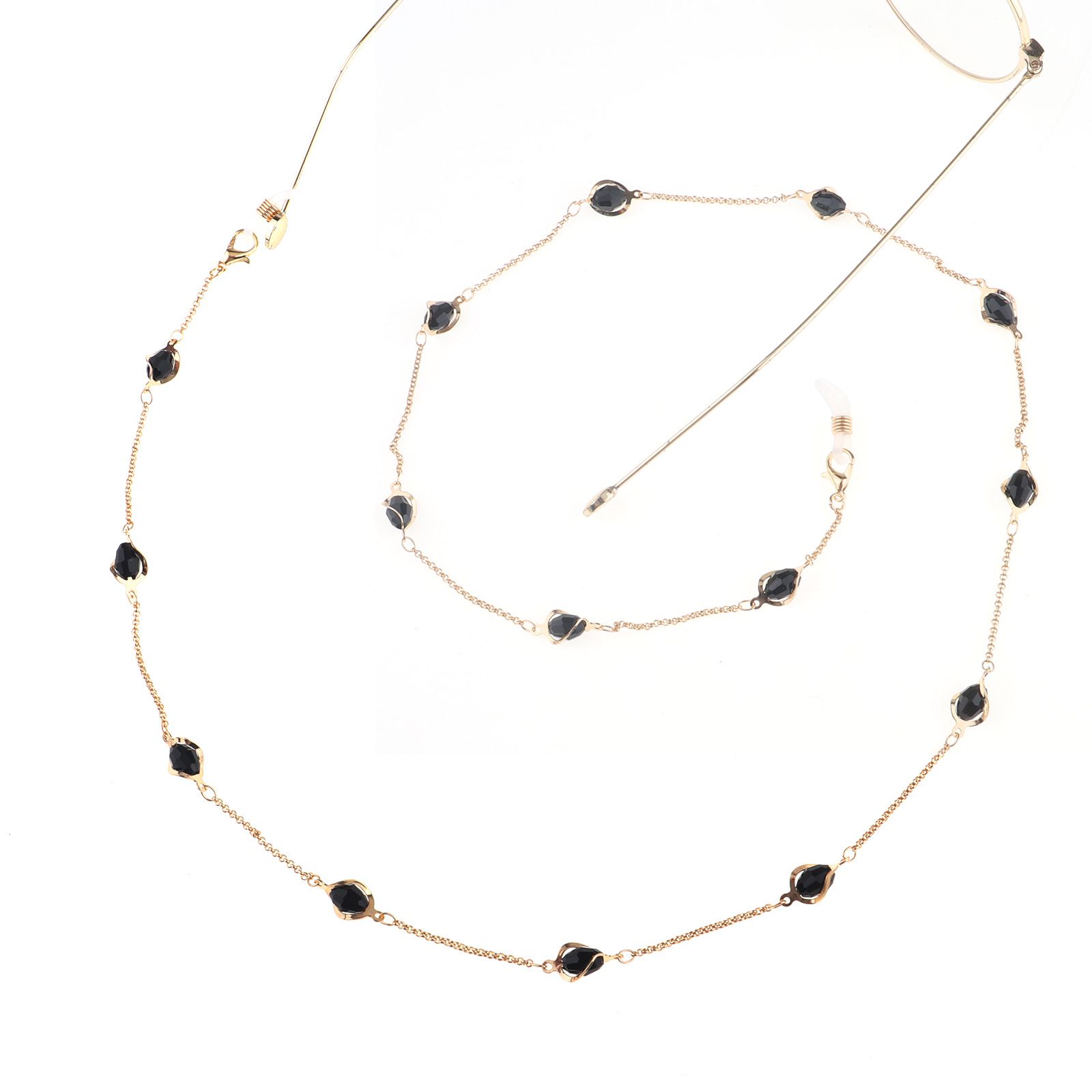 Gold-colored metal non-slip chain, with black crystal, for glasses and masks GL800