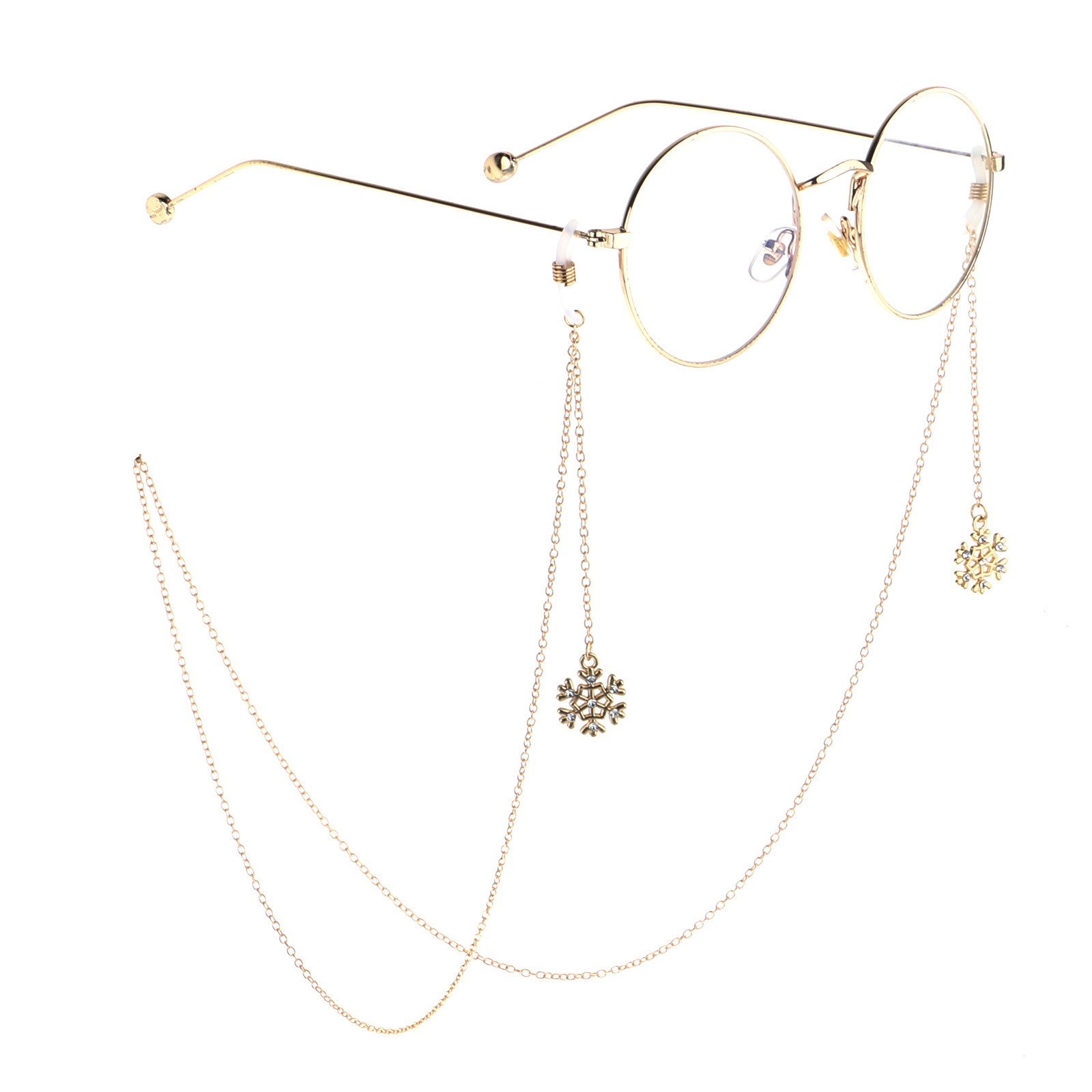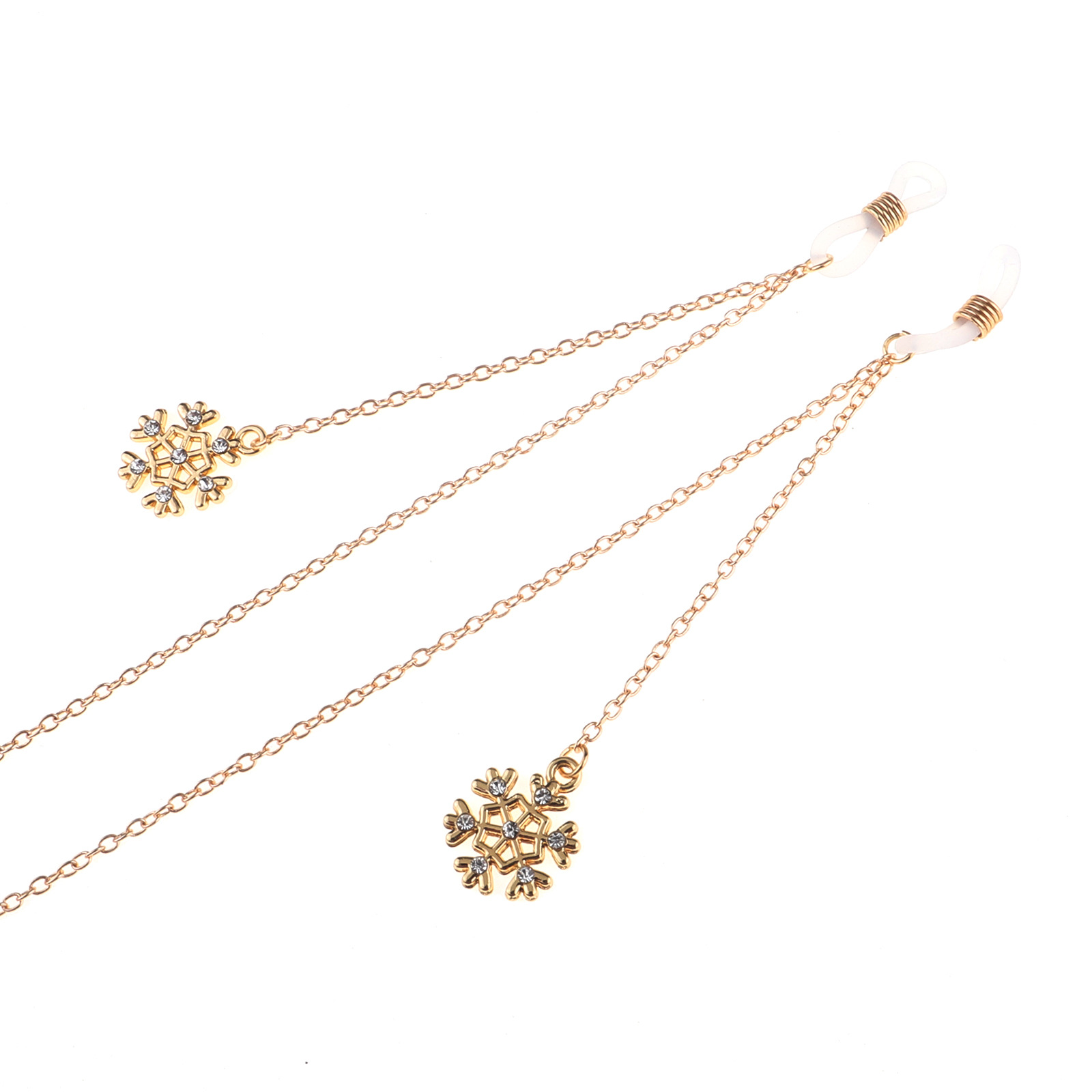 Gold-colored metal non-slip chain, with pendant snowflake with rhinestone, for glasses and masks GL806