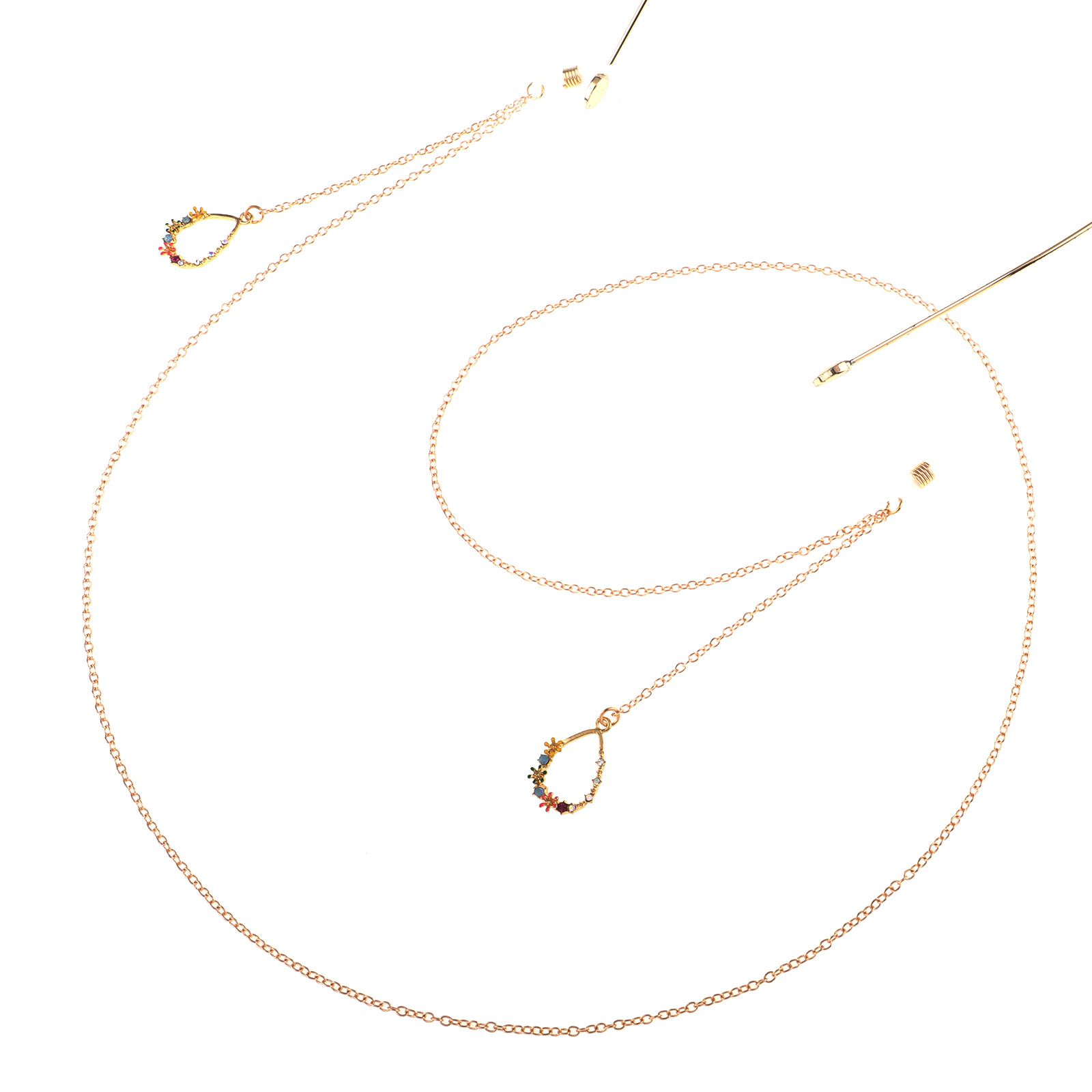 Gold-colored metal non-slip chain, with pendant water drop with diamond, for glasses and masks GL808