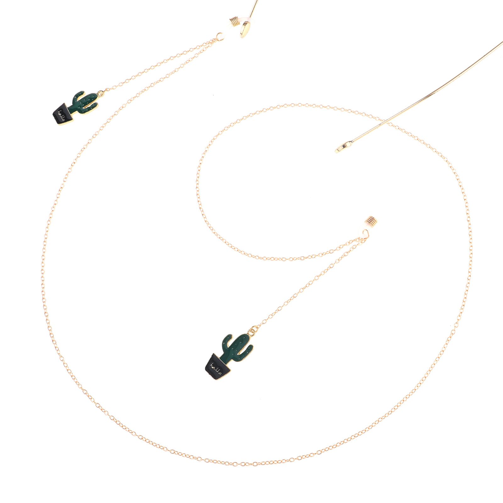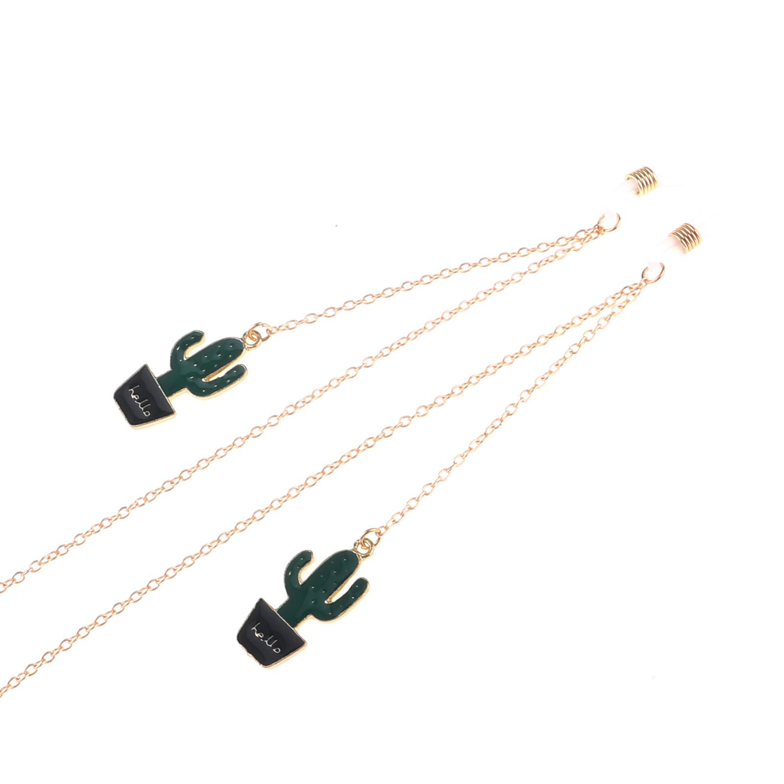 Gold-colored metal non-slip chain, with pendant cactus, for glasses and masks GL810