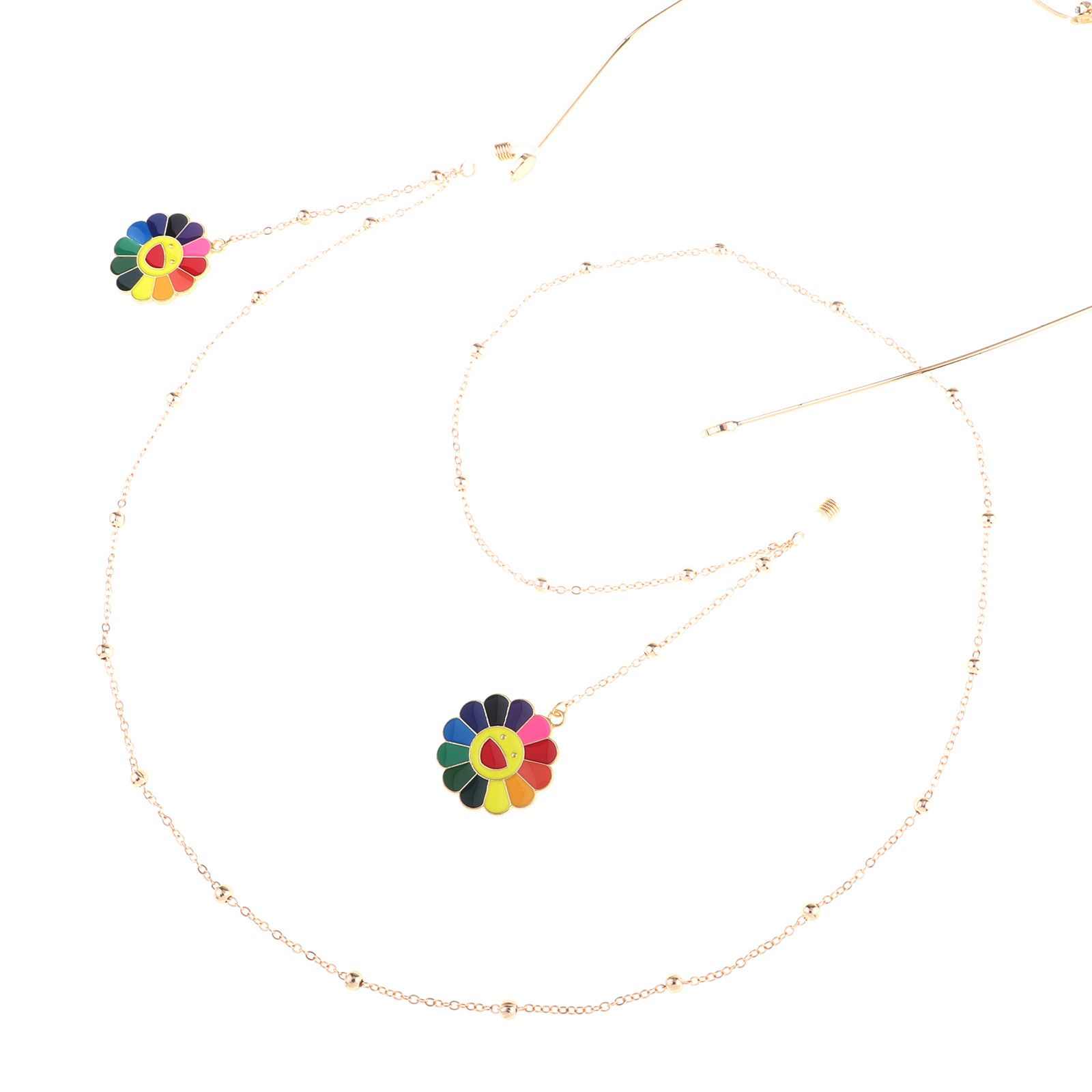 Gold-colored metal non-slip chain, with pendant sunflower and beads, for glasses and masks GL812