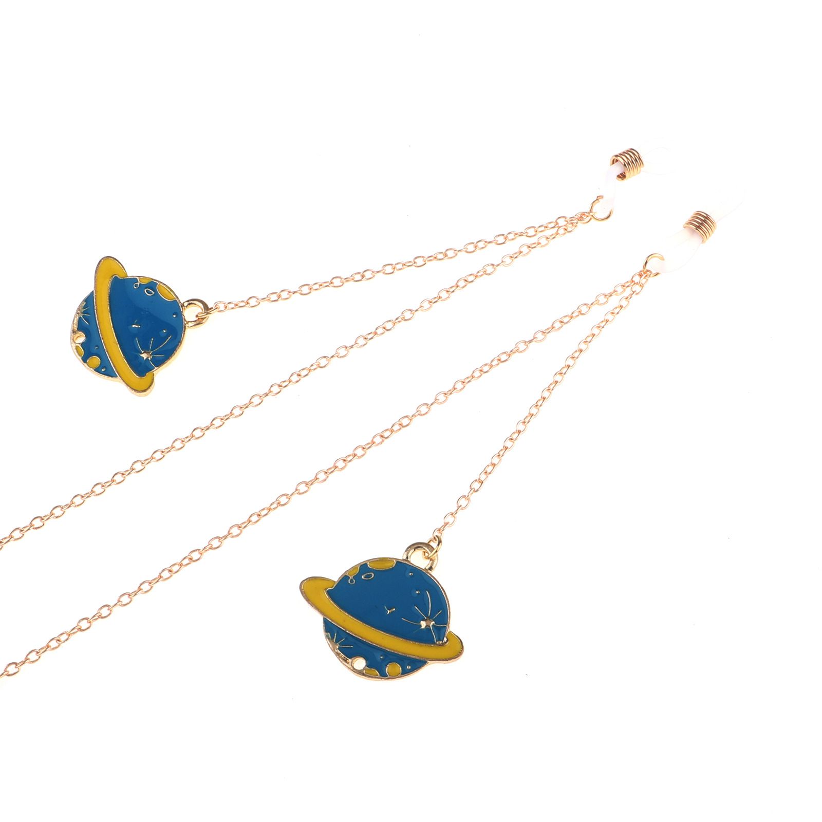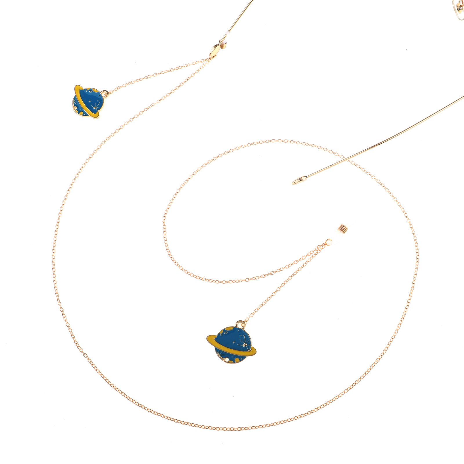 Gold-colored metal non-slip chain, with pendant planet, for glasses and masks GL814