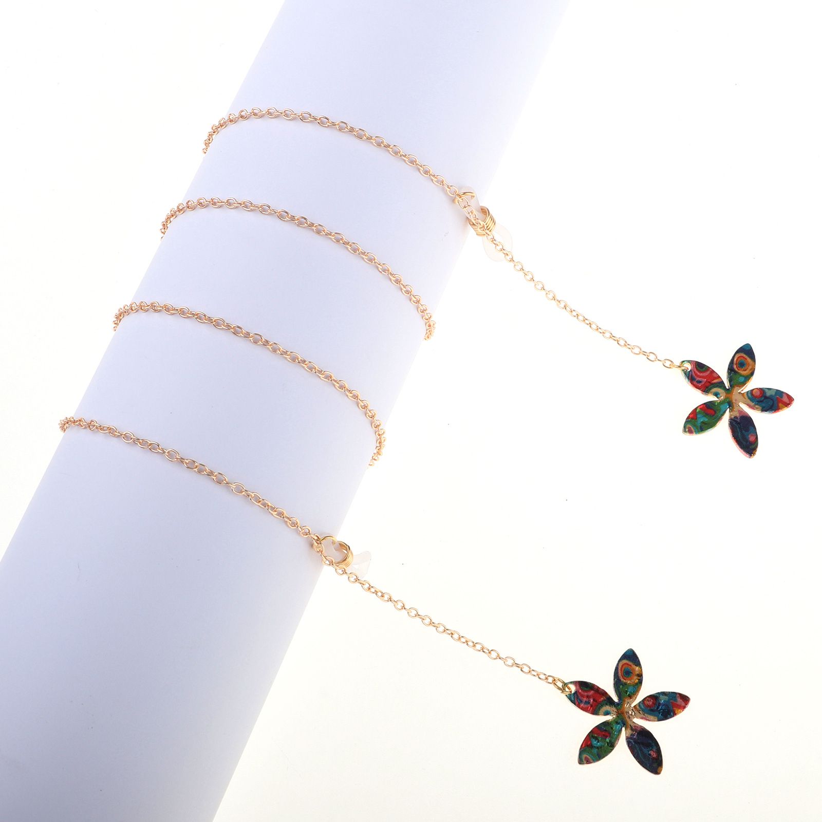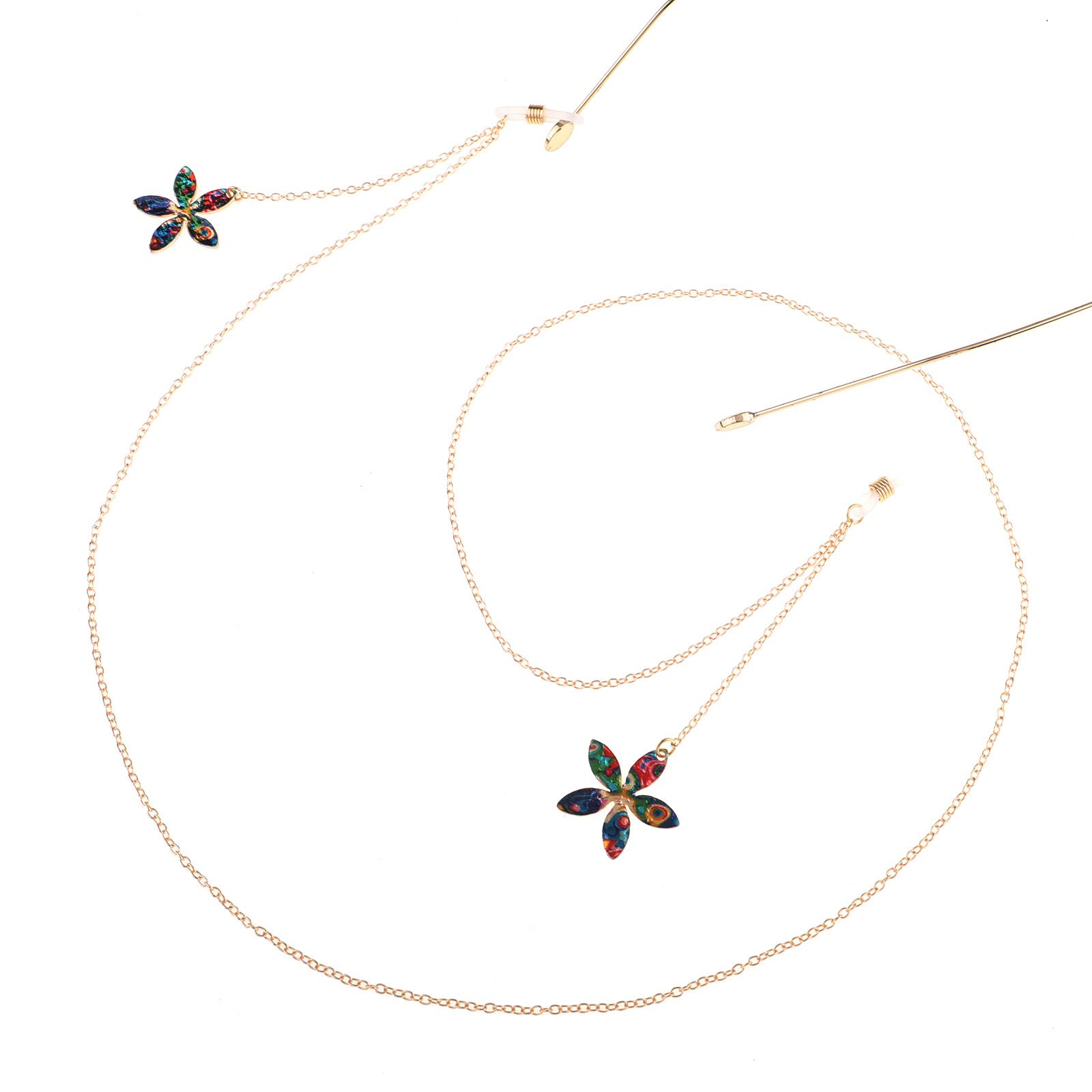 Gold-colored metal non-slip chain, with pendant flower, for glasses and masks GL816