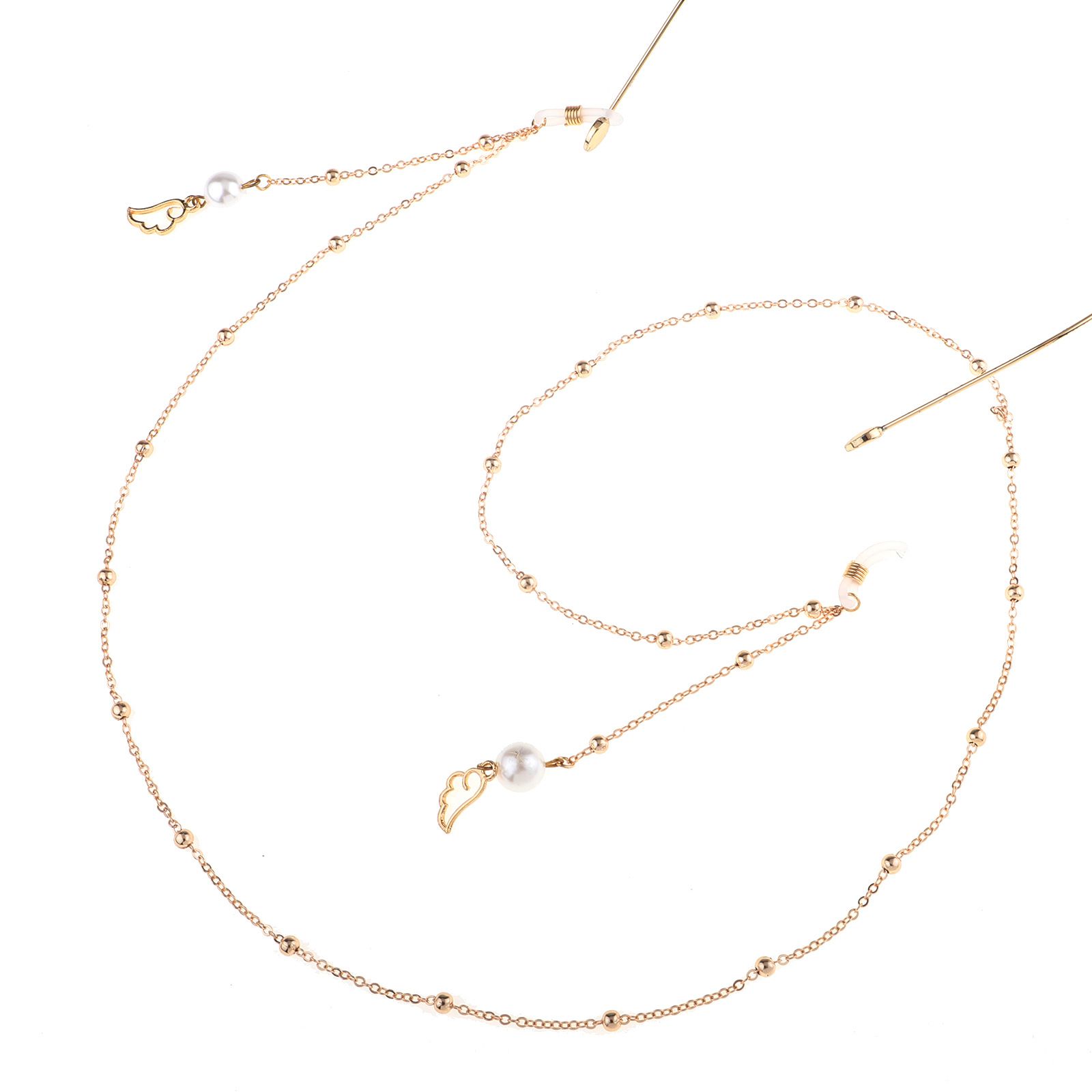 Gold-colored metal non-slip chain, with pendant wings of angel and pearl, for glasses and masks GL817