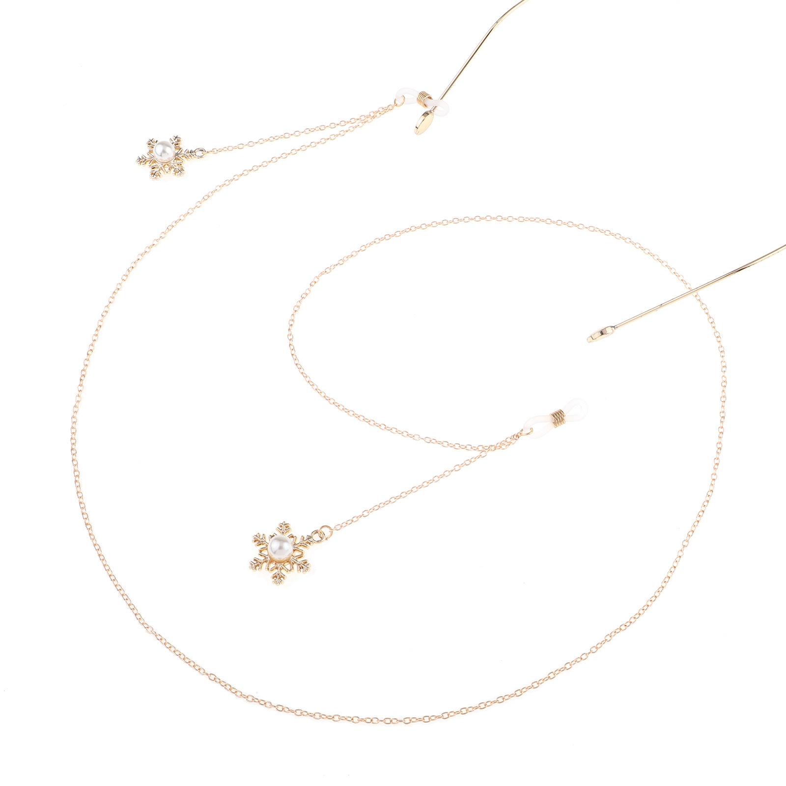 Gold-colored metal non-slip chain, with pendant snowflake with pearl, for glasses and masks GL826