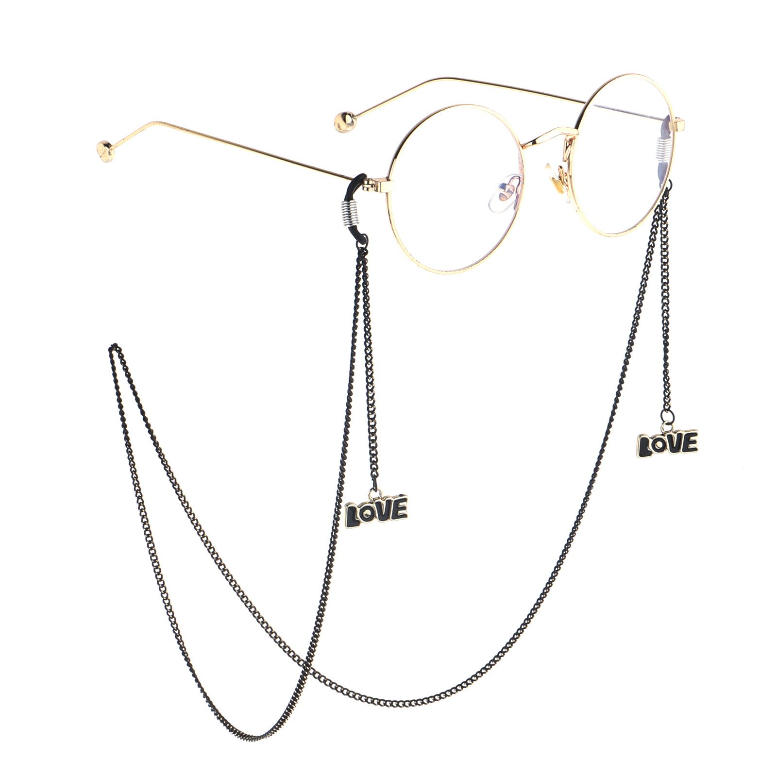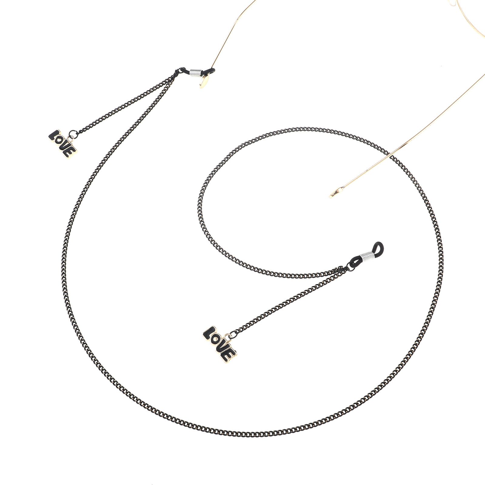 Black-colored metal non-slip chain, with pendant Love, for glasses and masks GL828