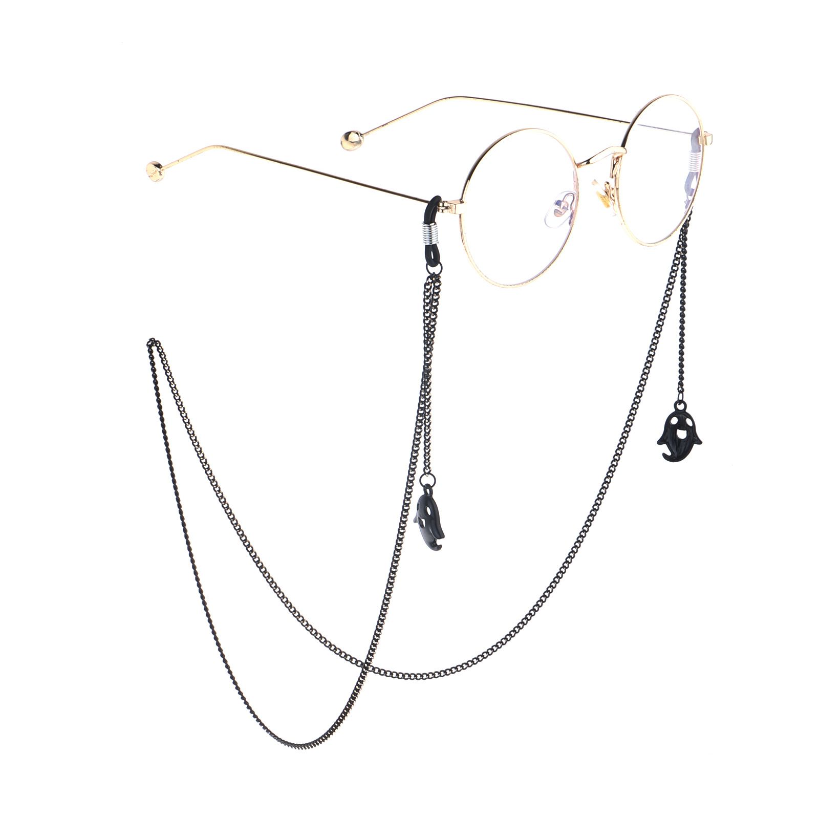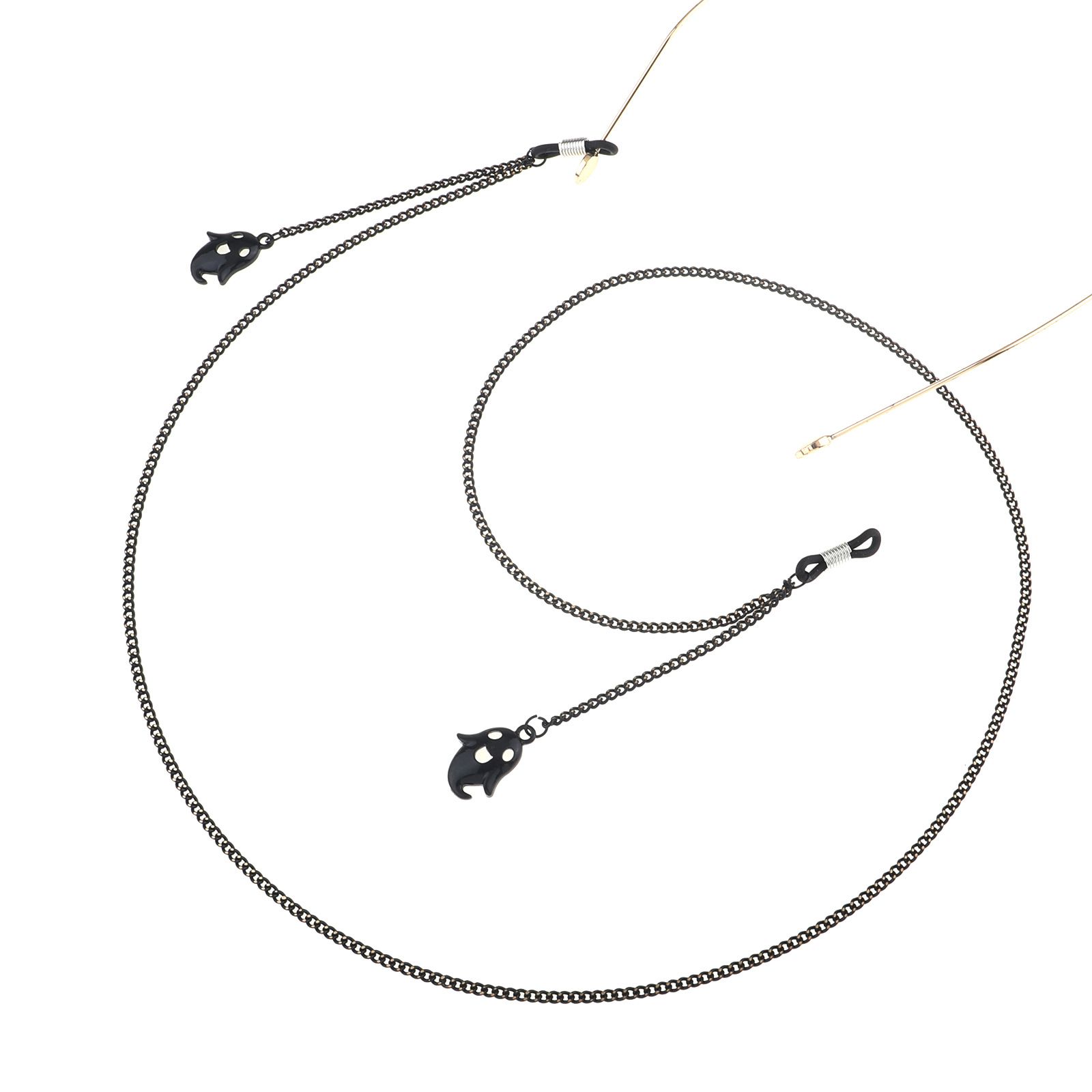 Black-colored metal non-slip chain, with pendant black angel, for glasses and masks GL834