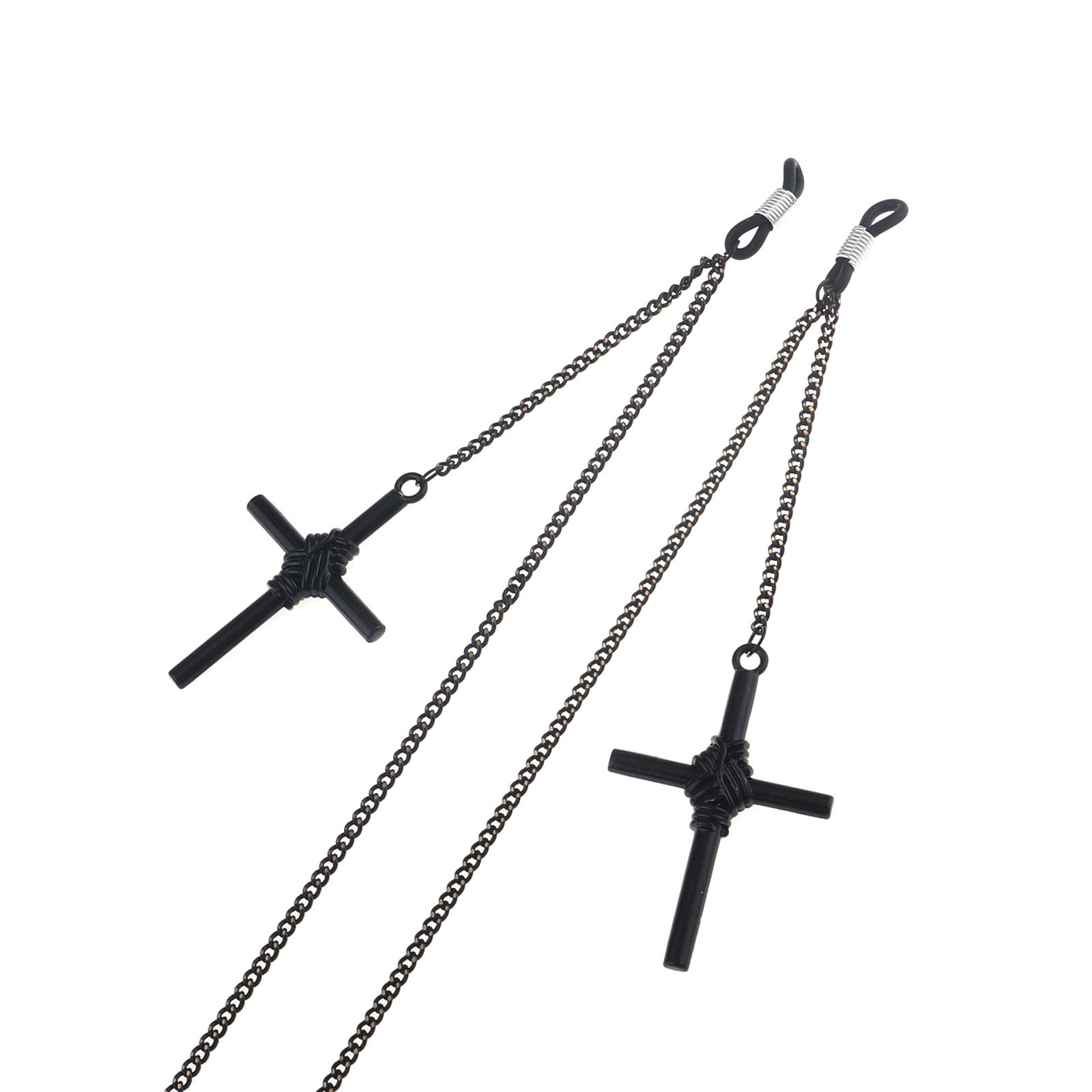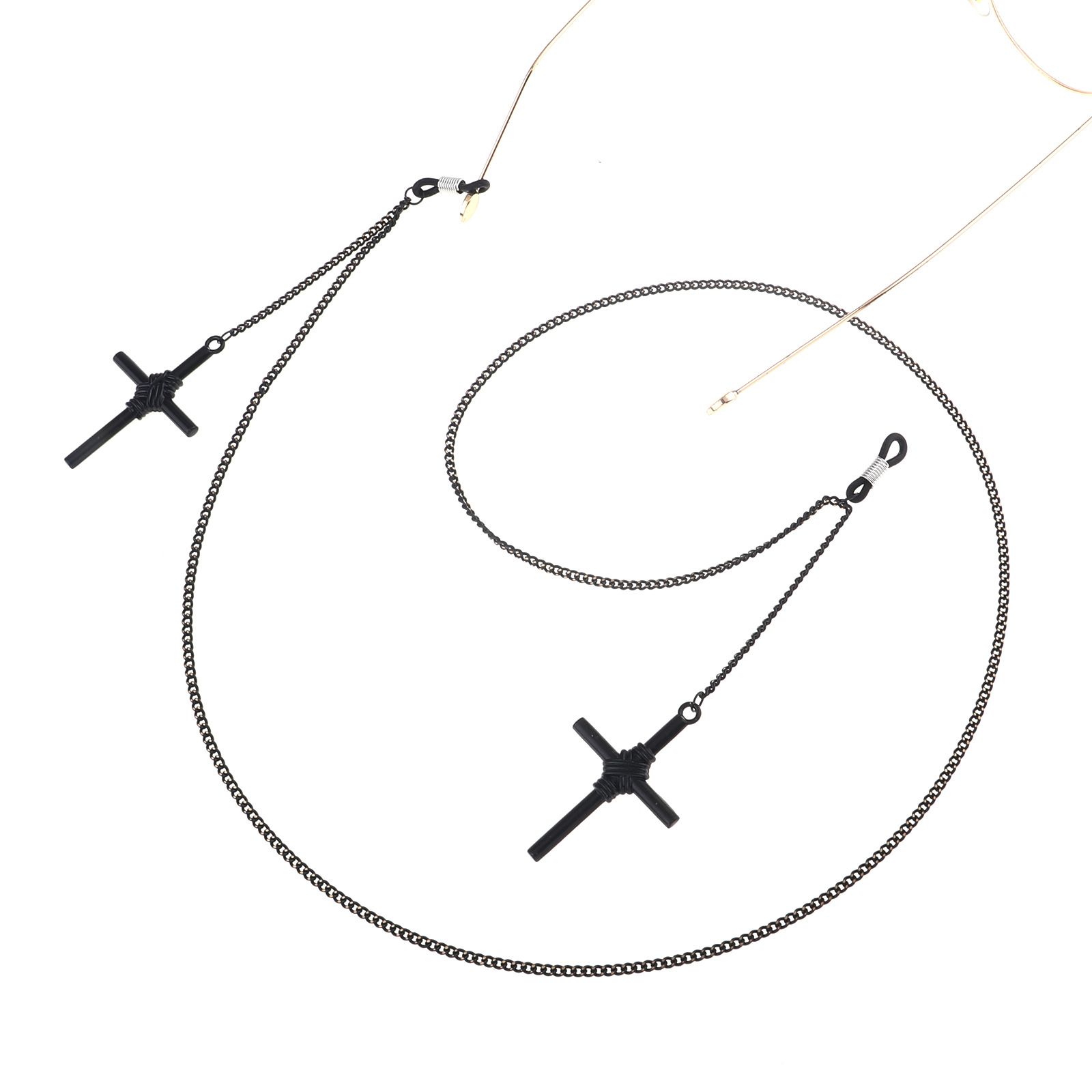 Black-colored metal non-slip chain, with pendant black cross, for glasses and masks GL836