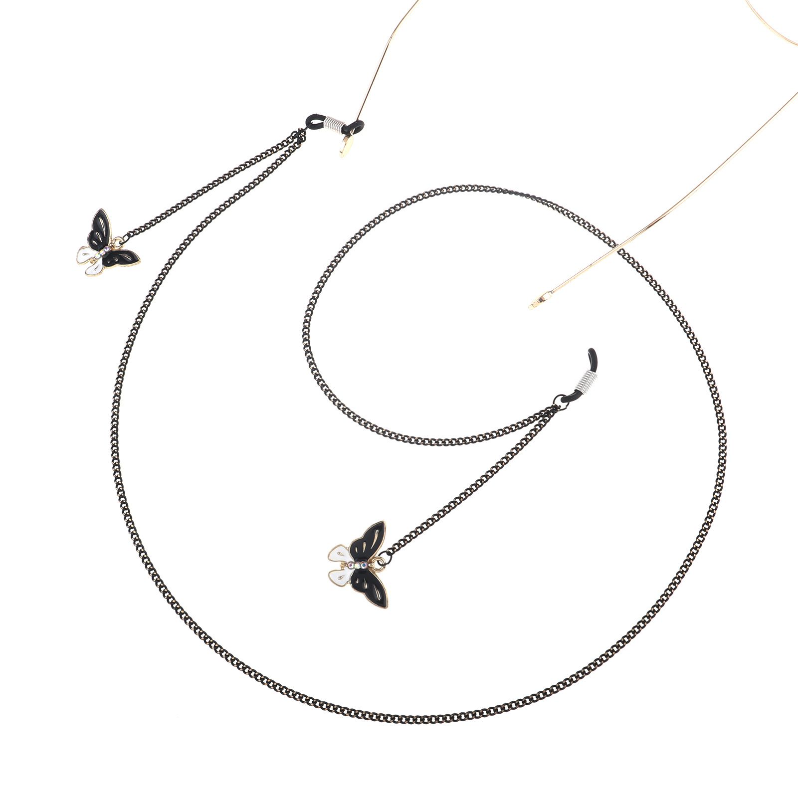Black-colored metal non-slip chain, with pendant butterfly, for glasses and masks GL837