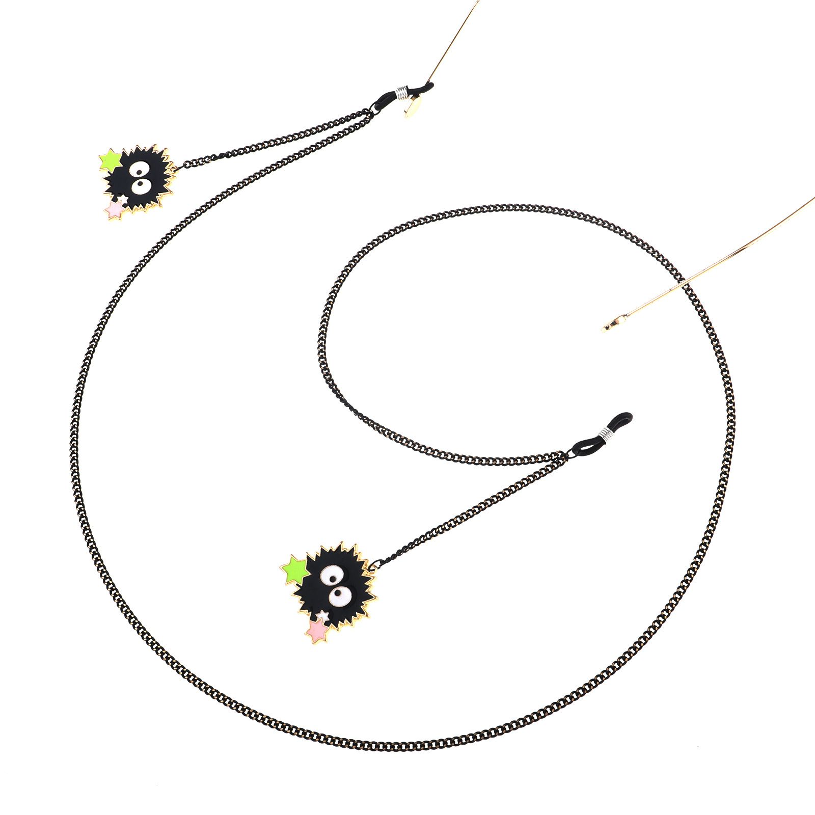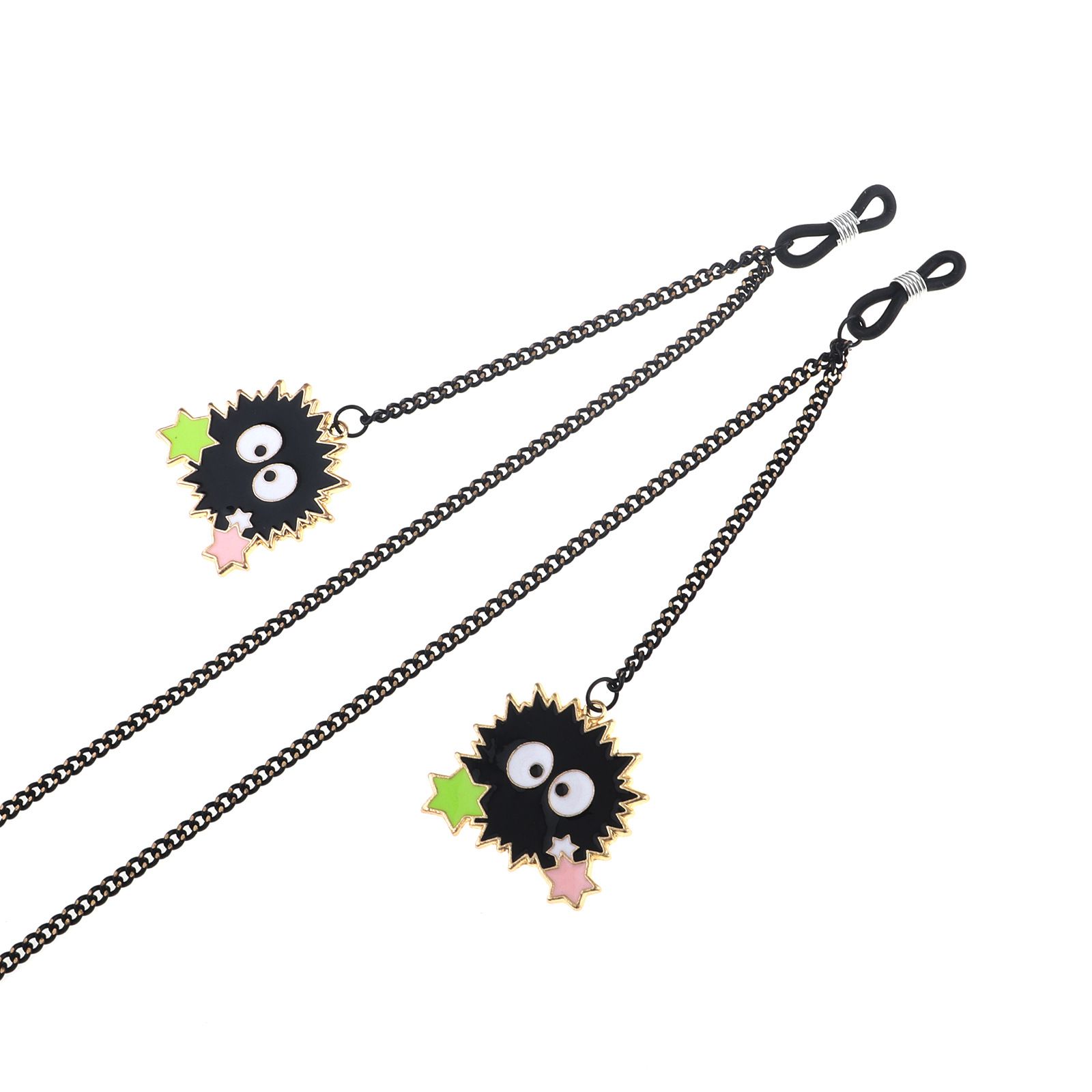 Black-colored metal non-slip chain, with pendant star briquettes, for glasses and masks GL840