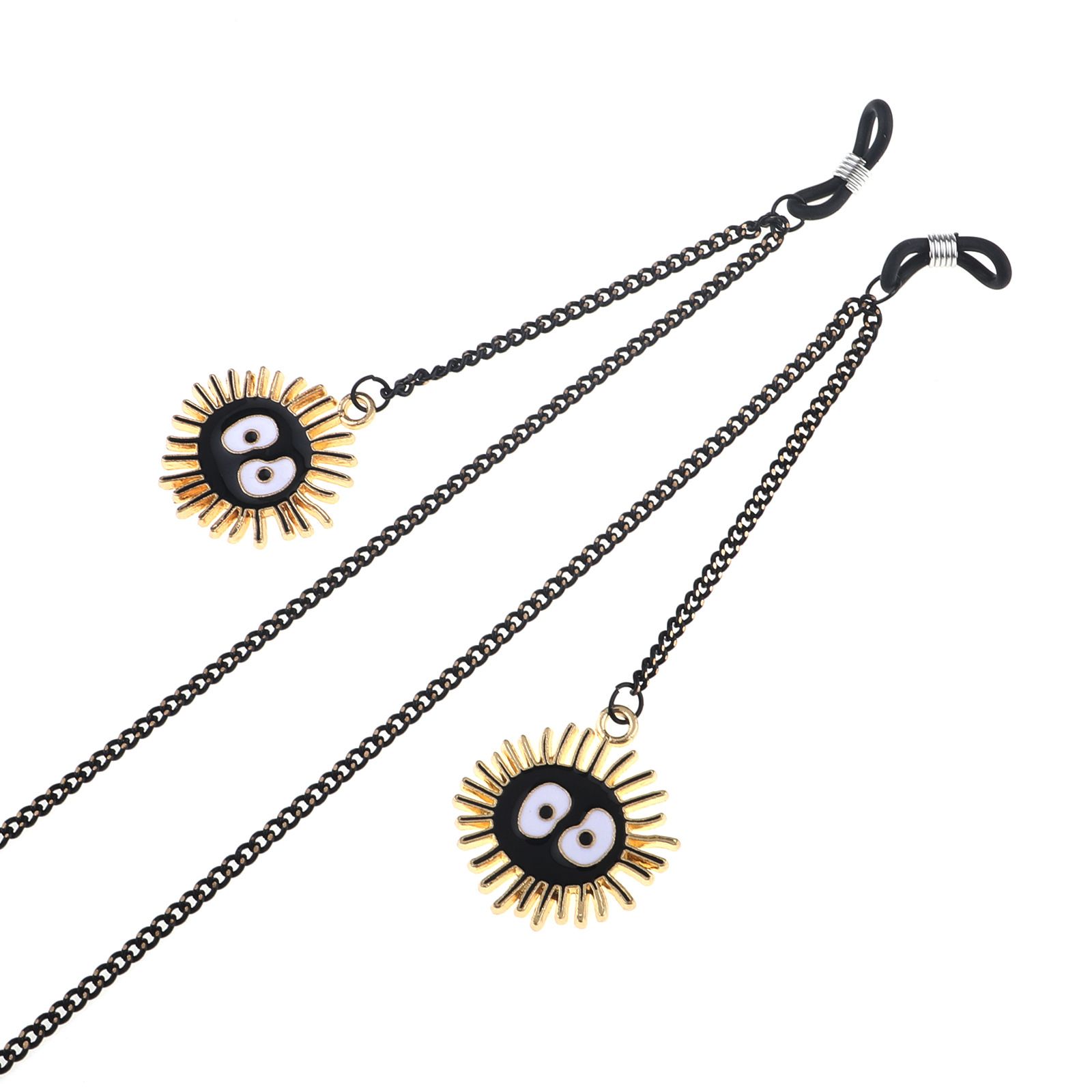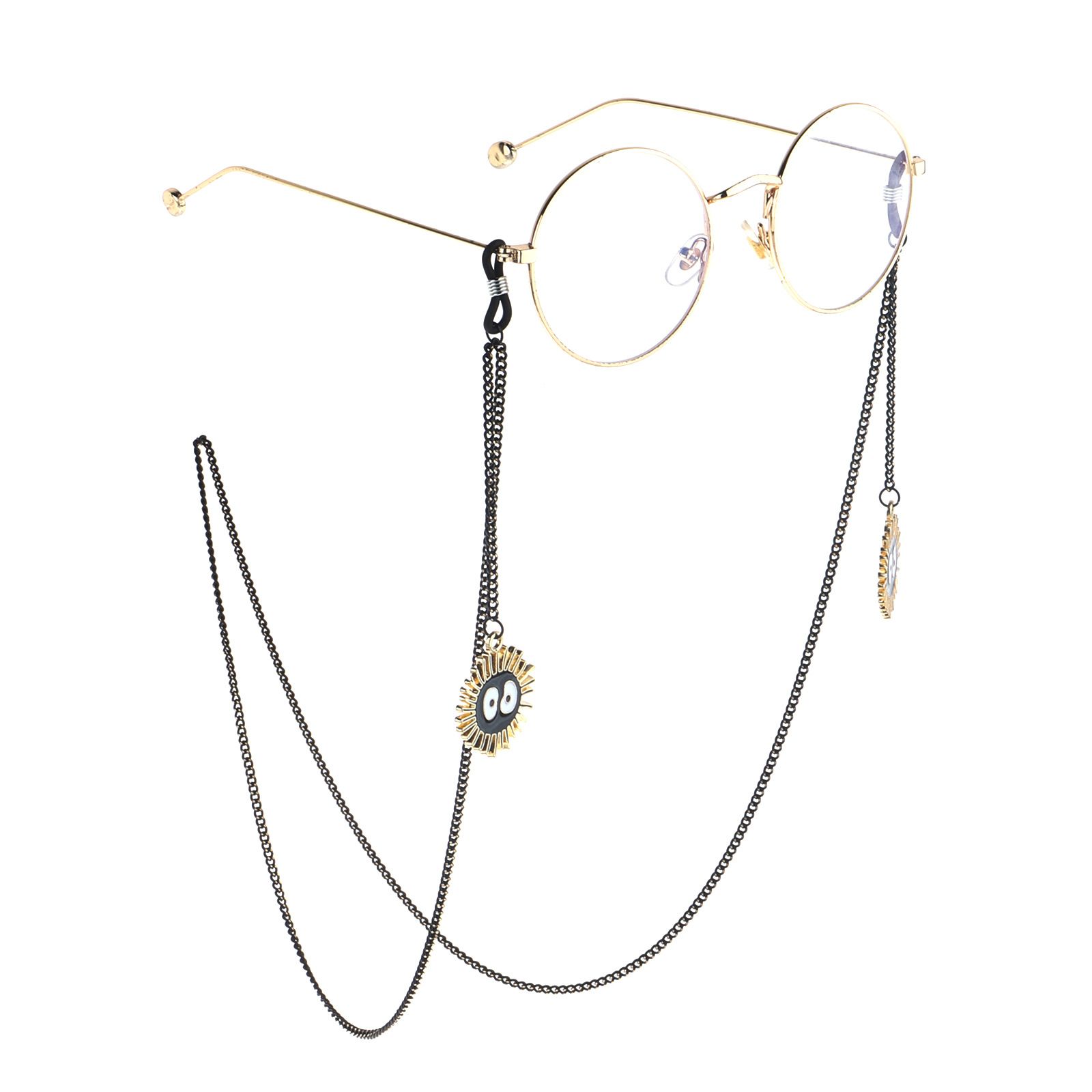 Black-colored metal non-slip chain, with pendant coal balls, for glasses and masks GL843